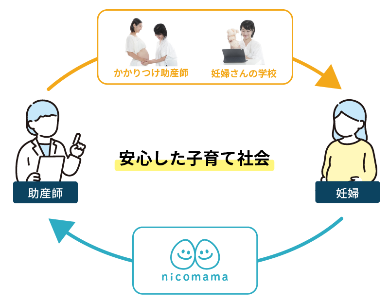nicomamaでは、産前産後を継続して支える助産師を “ かかりつけ助産師 ” と定義し “ かかりつけ助産師 ” が暮らしのそばで心身のケアや出産・子育てに向けた準備に伴走し、親子がどのような選択をしても、一人一人が肯定され尊重される社会を浸透させます。