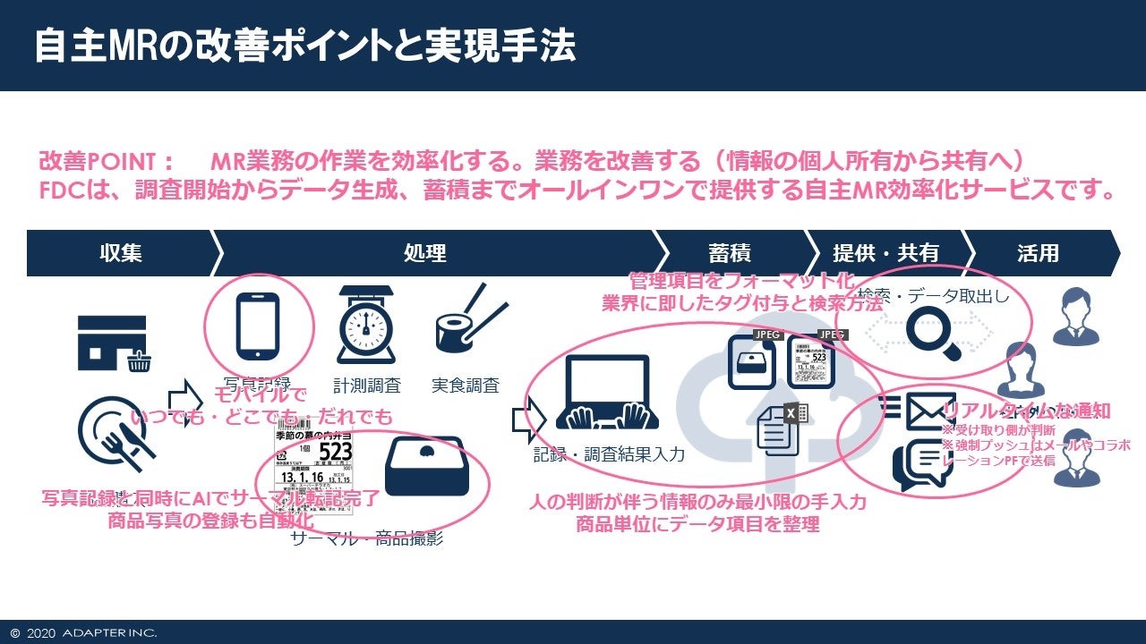 FDCは“経費を費やし調査した自主MRデータを企業の財産として価値化”し、DX推進に欠かすことの出来ない“目に見えない無駄を解決改善”するサービスです。
