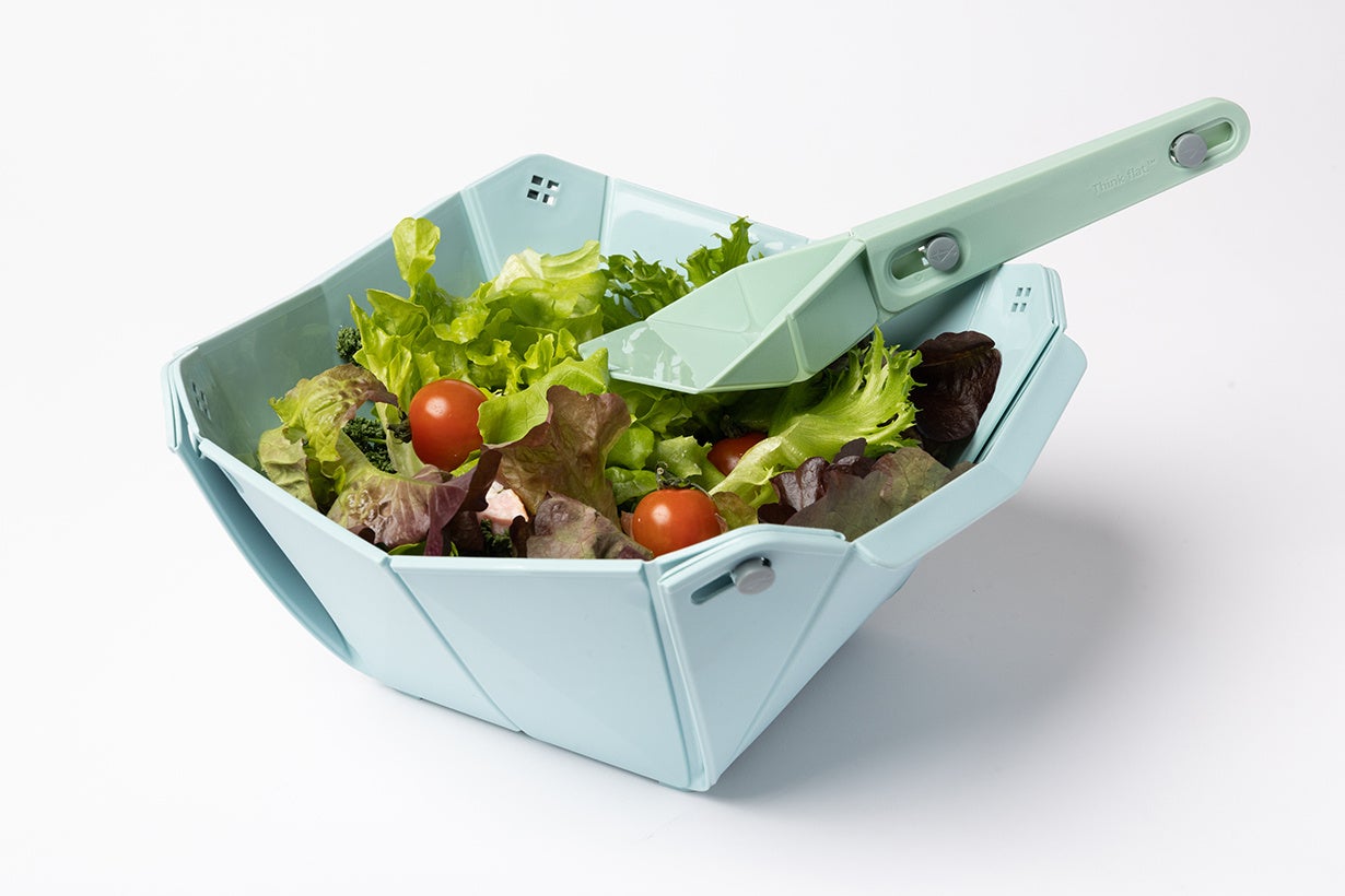 「Think flat」シリーズの食器は、薄くフラットなデザインになっています。使わないときには、薄くてコンパクトに収納できるため、持ち運びや収納に便利です。