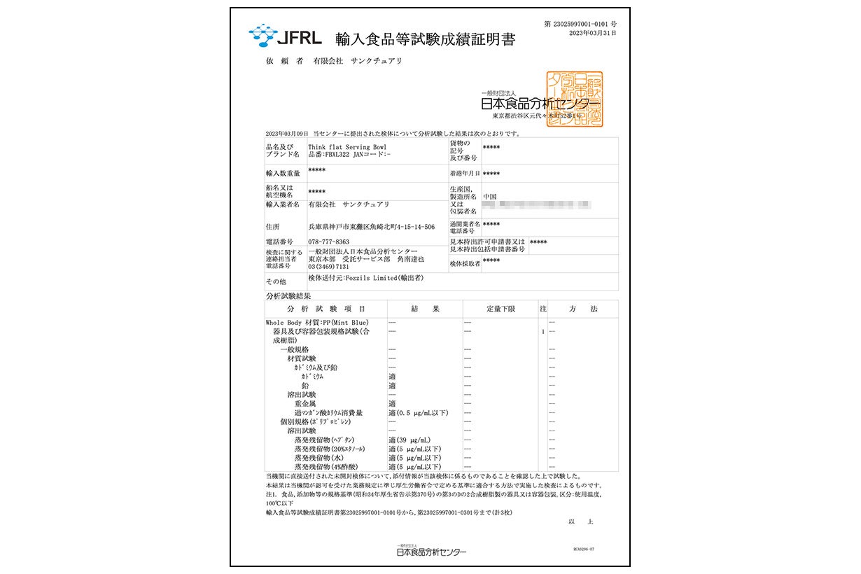 「Think flat」シリーズの食器は、日本の食品衛生法の基準をもちろんクリアしております。