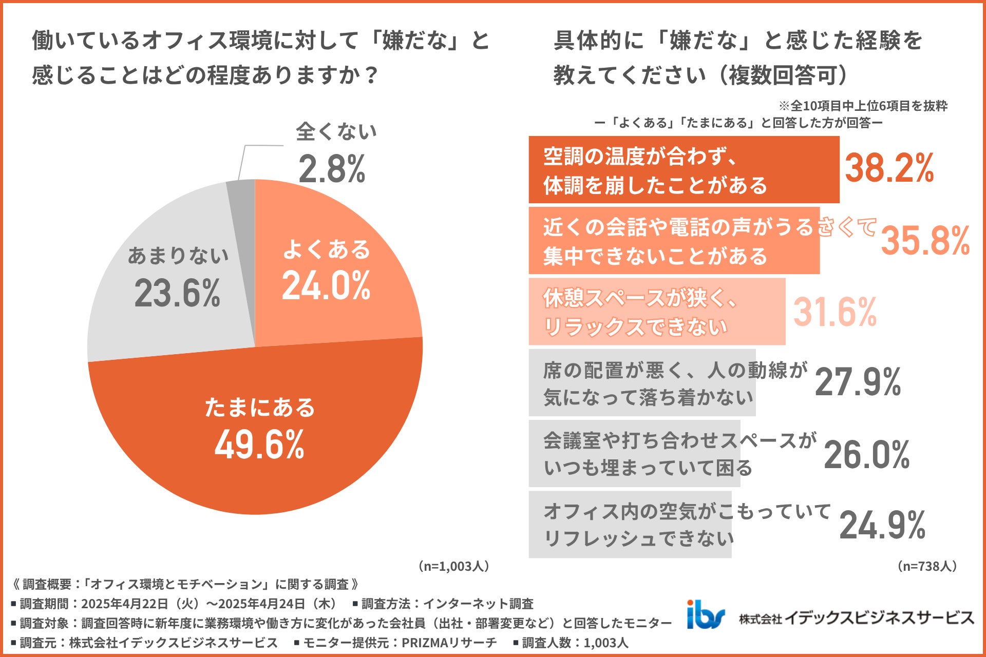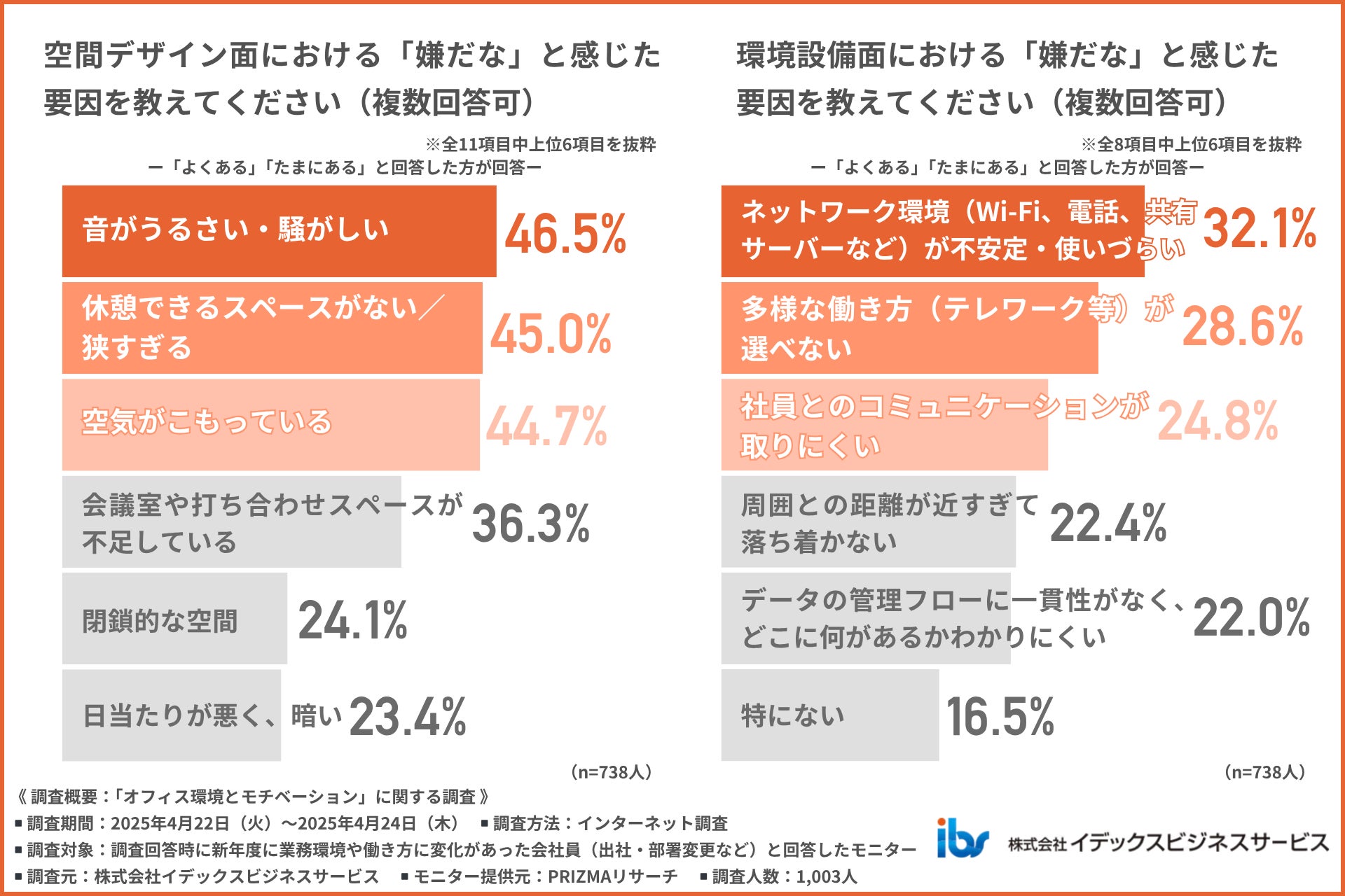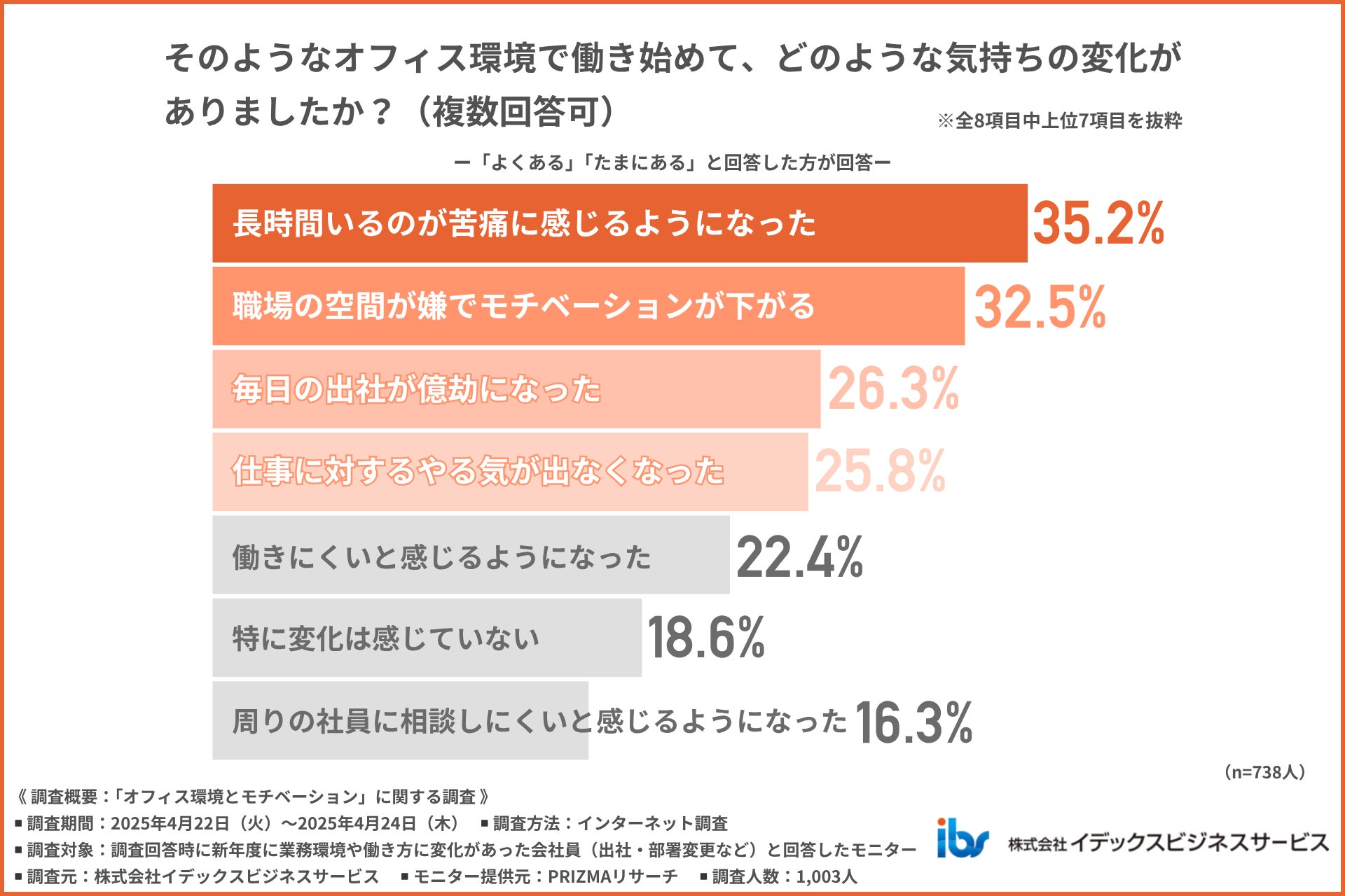 オフィス環境への不満が積み重なることで、精神面にも悪影響が生じている様子が明らかになりました。