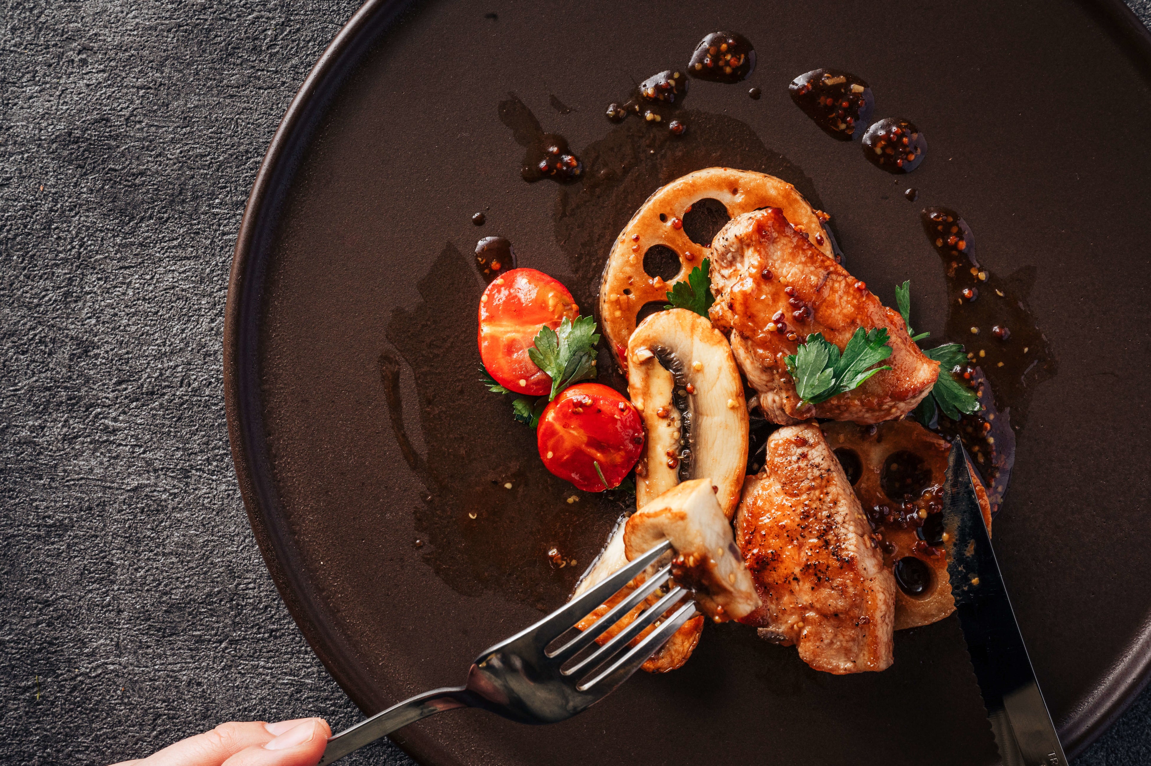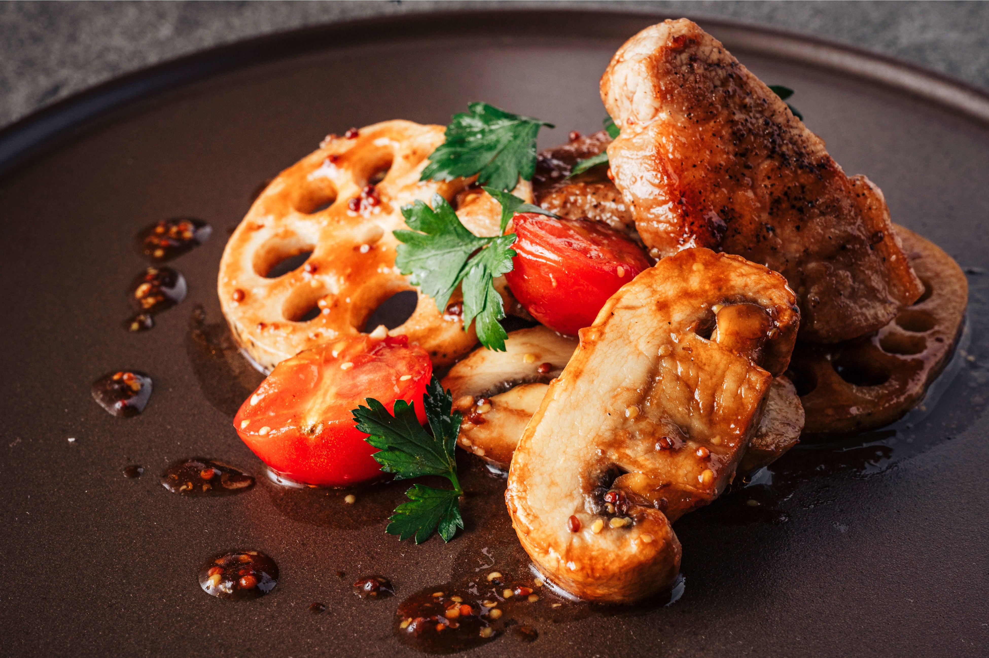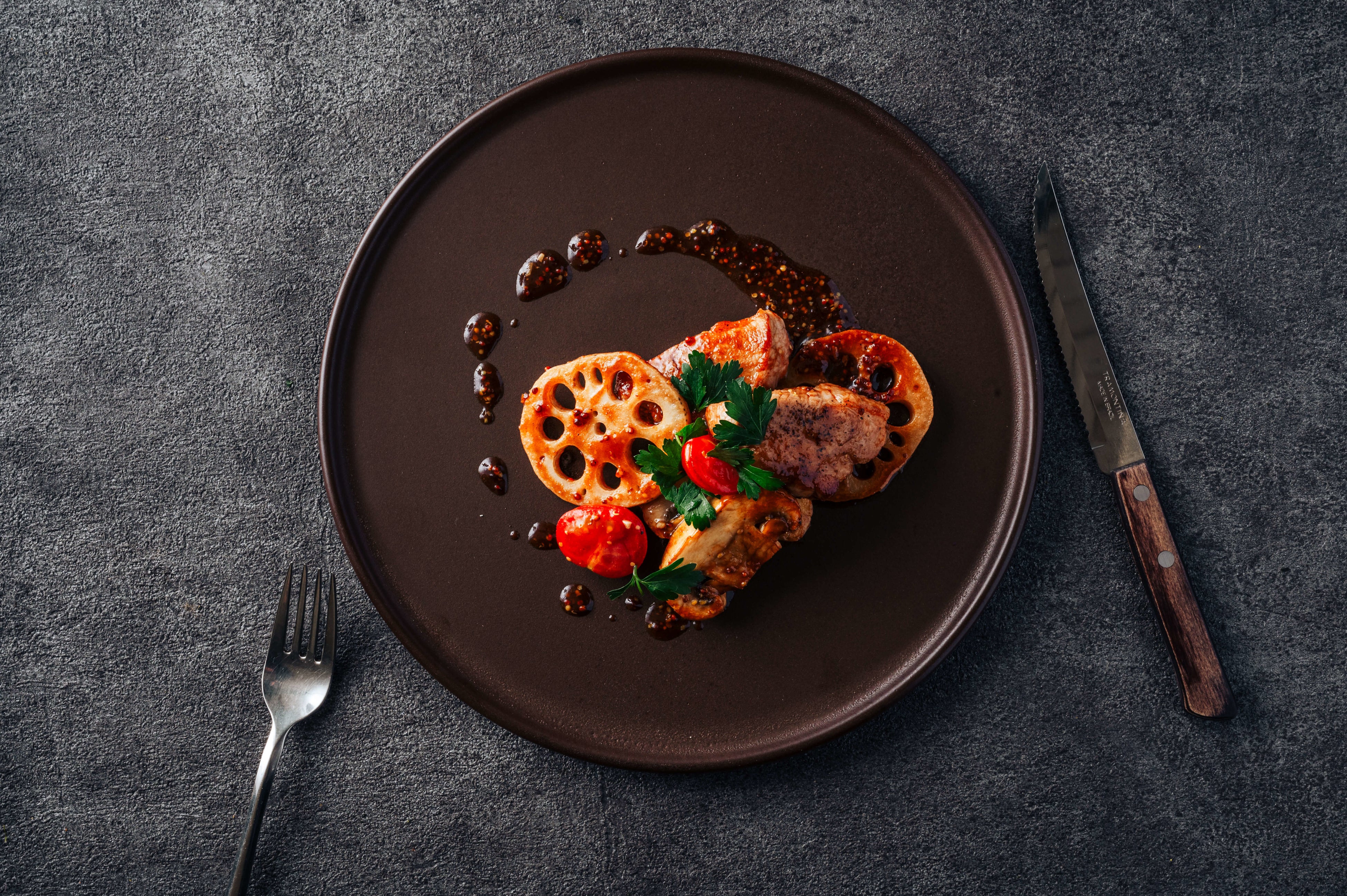 ハニーマスタードソースの上品な酸味で、脂の乗った豚バラ肉も軽やかにお召し上がりいただけます。絶妙な火入れにより実現した、ジューシーな豚バラ肉の柔らかさにサクサクっとしたレンコンの食感も魅力です。