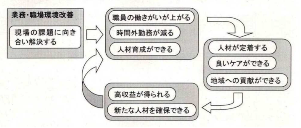 本事業は、介護現場において生産性向上を行うことで業界を活性化させ、福祉関係や他の業界に横展開をすることで「ひと」と「しごと」の好循環を生み出し「まち」が活性化していく仕組みを創り出す地方創生の取組みの一環※であり、全国に先駆けた先進的な取組みとして大変注目されています。