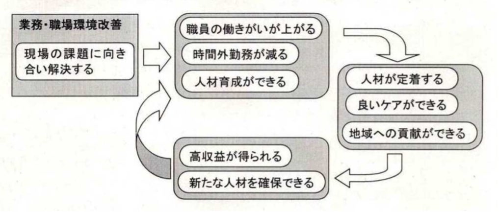 多くの施設サービスから在宅サービスまで、介護事業所の伴走支援を実施し、その取り組みの結果として、生産性向上、働きがいの向上、自律的な人材育成の3つを常に同時に生み出してきました。
