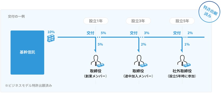 信託型ストックオプションは、役職員等に渡すべき新株予約権を⼀旦信託の中に プール(冷凍)しておき、貢献期待値を⾒た上で、後⽇、役職員等に交付することが可能とするインセンティブ・スキームであり、当社は創業以来、当社グループが出願特許を有する「時価発行新株予約権信託®︎(取崩し交付タイプ)」を中心に、様々なタイプの信託型ストックオプションを提供しております。