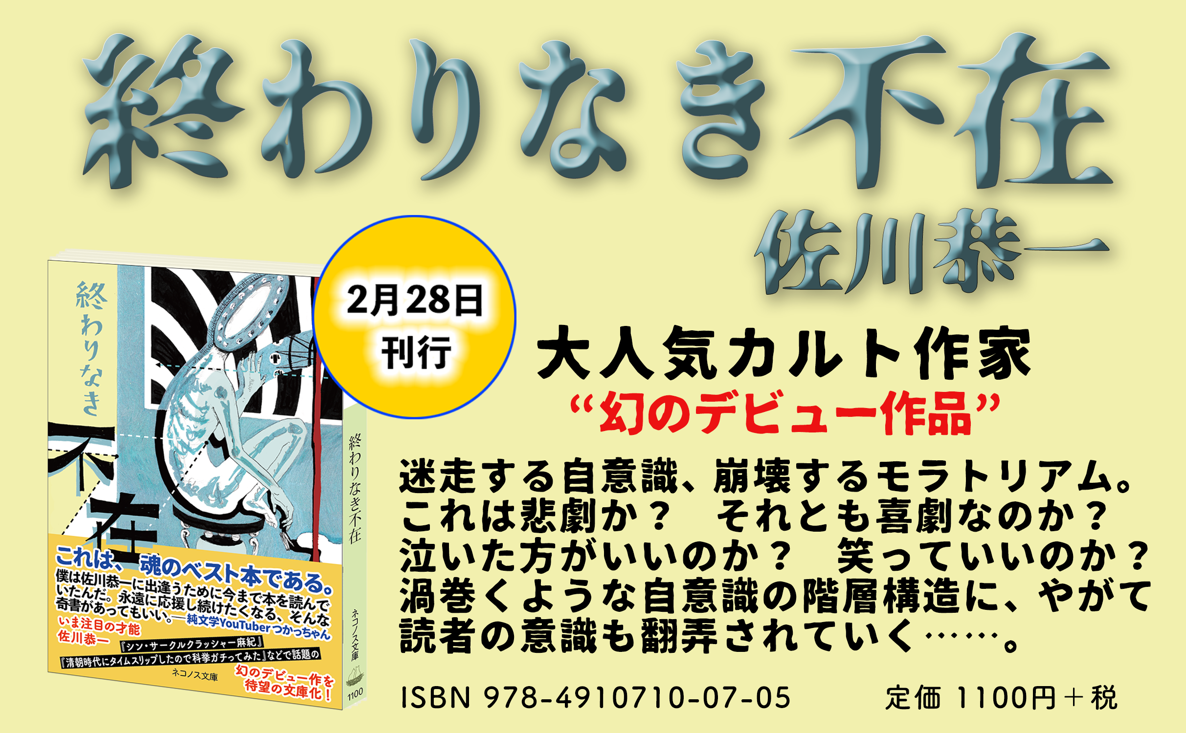 ネコノス合同会社(東京・世田谷区)は、2023年2月28日に書籍『終わりなき不在』(文庫版)を刊行します。