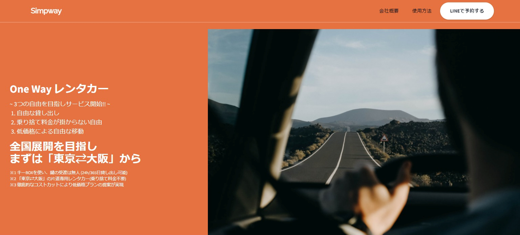 ワクワクする冒険旅を応援するモビリティサービス開始!片道毎に柔軟に使える自由な移動を実現する『乗り捨て料金完全無料の片道専用レンタカー//"Simpway"』