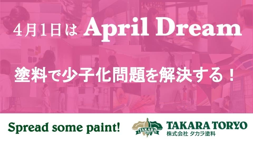 「Spread some paint!」を理念にするタカラ塗料は、日本に「塗料」が普及すれば空き家問題や少子化問題を解決できると本気で信じています。当社は、4月1日を夢を発信する日にしようとするApril Dreamに賛同しています。このプレスリリースはタカラ塗料の夢です。