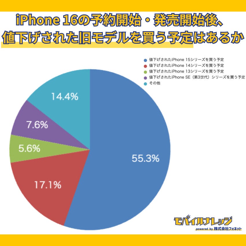 ・iPhone 16の予約開始や発売開始後、15シリーズを値下げ価格で買う予定の人は55.3%