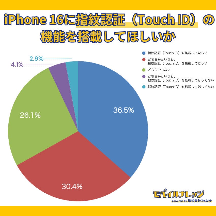 ・iPhone 16シリーズで、指紋認証(Touch ID)を搭載してほしいと思う人は36.5%