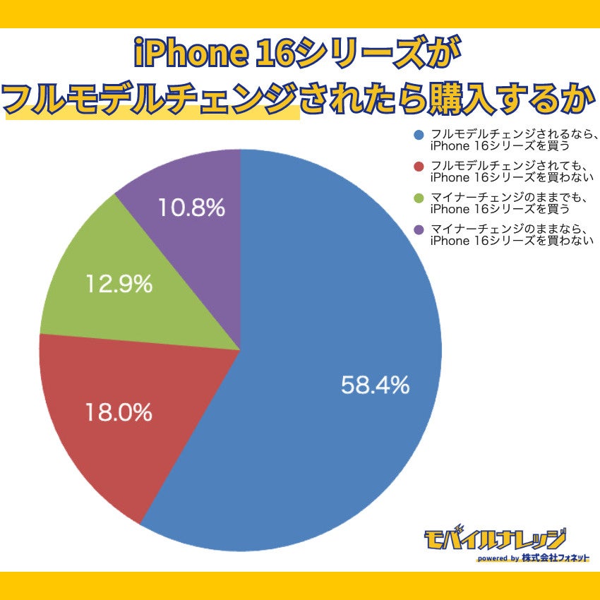 ・フルモデルチェンジされた場合、iPhone 16シリーズを買う人は58.4%