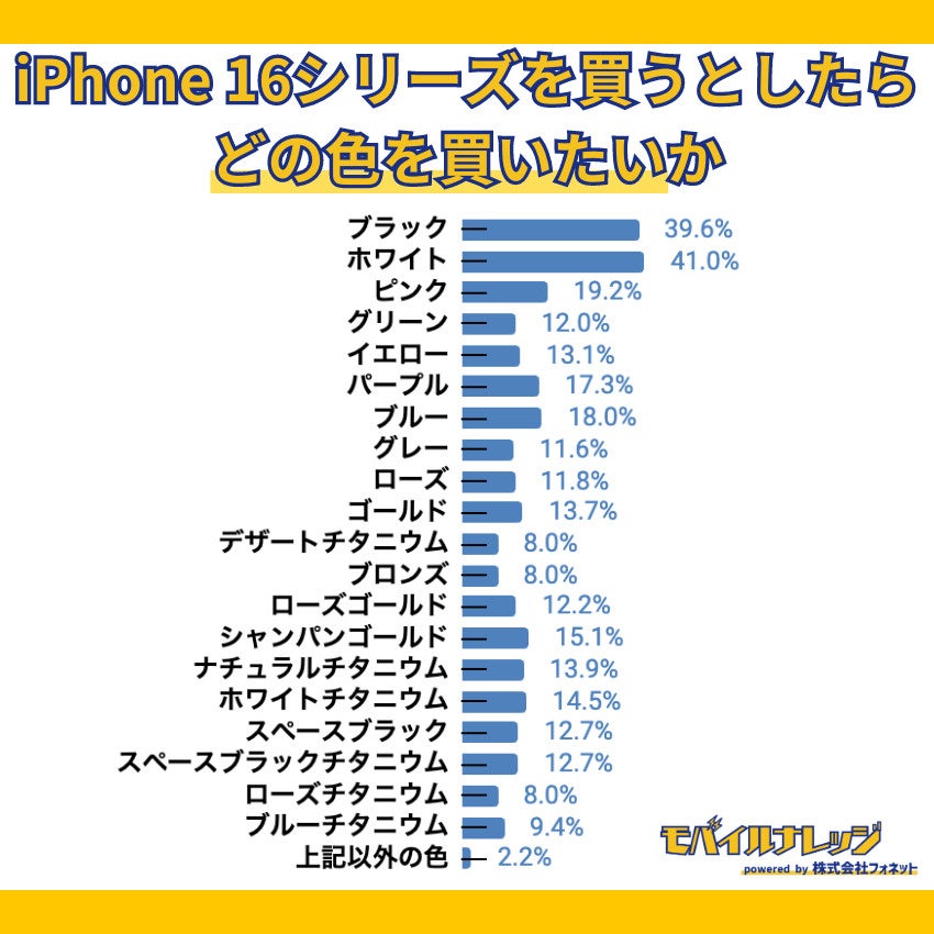 ・iPhone 16シリーズはホワイトを購入したいと思っている人が41.0%で一番多い