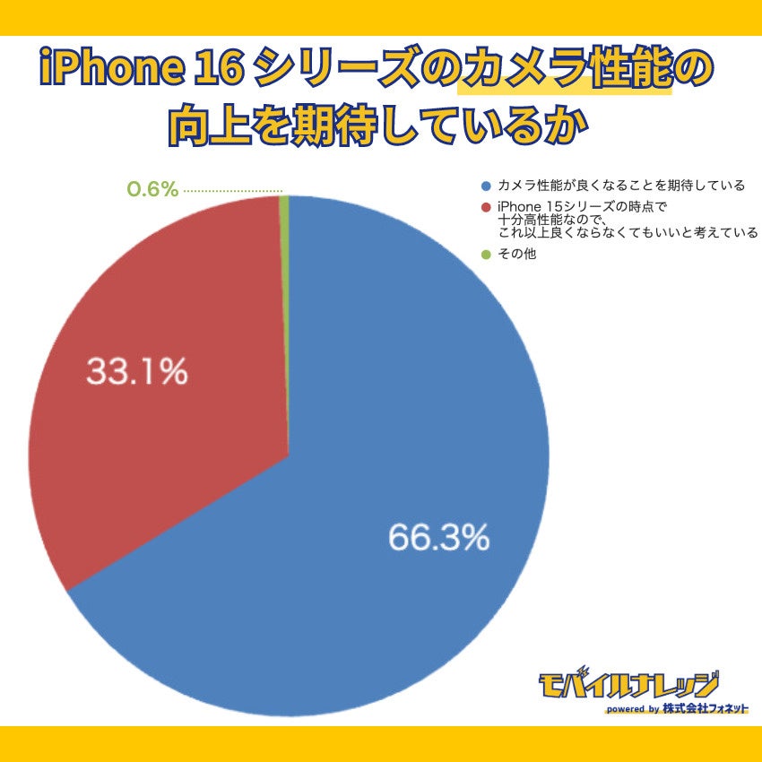 ・iPhone 16のカメラ性能が良くなることを期待している人は66.3%