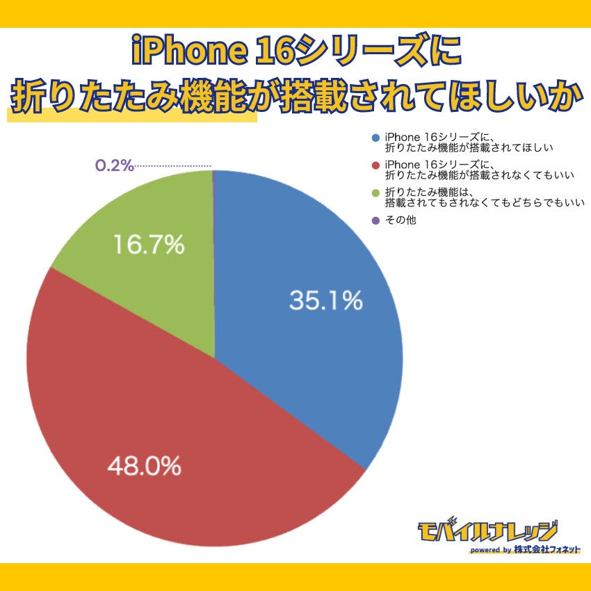 ・iPhone 16シリーズで、折りたたみ機能が搭載されなくてもいいと思う人が48%