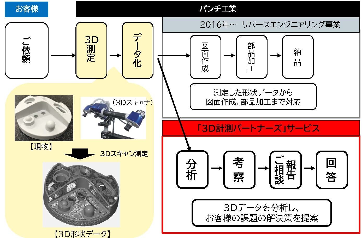 また、一部のお客様からの「品質確認をしたい」という要望にさらに貢献すべく、お客様との協働や市場調査、社内評価などの体制整備を進めてまいりました。そしてこの度「3D計測パートナーズ」として本格的にサービスを開始することとなりました。