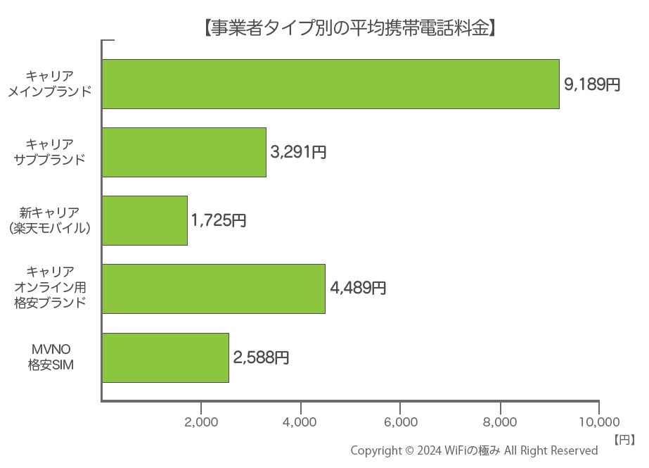 キャリアは他のタイプに比べると基本料金が1.5〜2倍程度かかってしまうことに加え、端末のセット購入による端末代も加算されているのが主な要因だと考えられます。