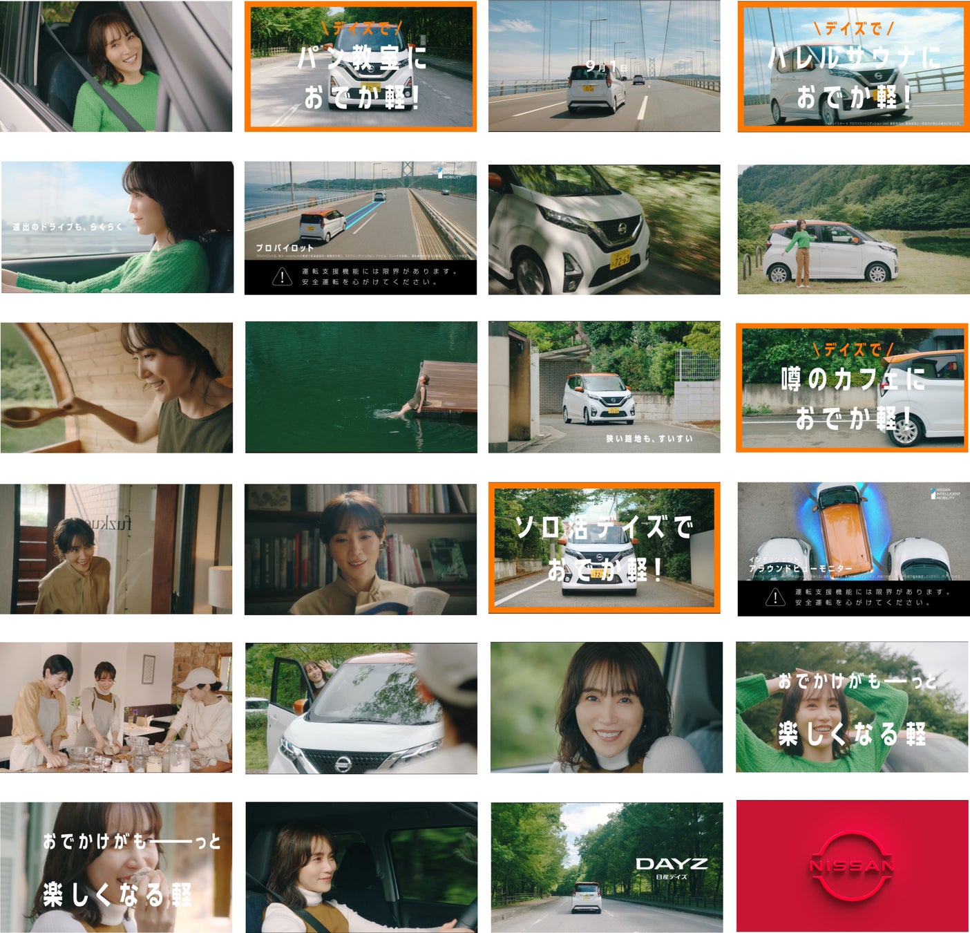 今回のWEBムービーでは、山口紗弥加さんが日産デイズに乗って、「ソロ活(ひとりの時間を楽しむ活動)」を楽しむ日々を追っています。バレルサウナを楽しむために、少し遠出をする日も、日産が誇る先進技術である、高速道路での走行でアクセル・ブレーキ・ハンドルの操作をクルマがアシストする運転支援技術「プロパイロット」でより快適に目的地までドライブ。大自然に囲まれた空間の中、サウナで整いリフレッシュした様子の山口さん。また別の日には、近所で噂のカフェに出かけるときに狭い道路に遭遇。小回りが利く軽自動車だから快適に運転し、目的地のカフェで静かに読書を楽しみます。また、クルマを上空から見下ろしているかのような映像で、駐車をアシストする「インテリジェント アラウンドビューモニター」を駆使することで、らくらくと駐車ができて、友達とパン教室を楽しむ日も。日産デイズがあることで日々の「ソロ活」が、より快適に、より一層楽しくなることを表現しています。