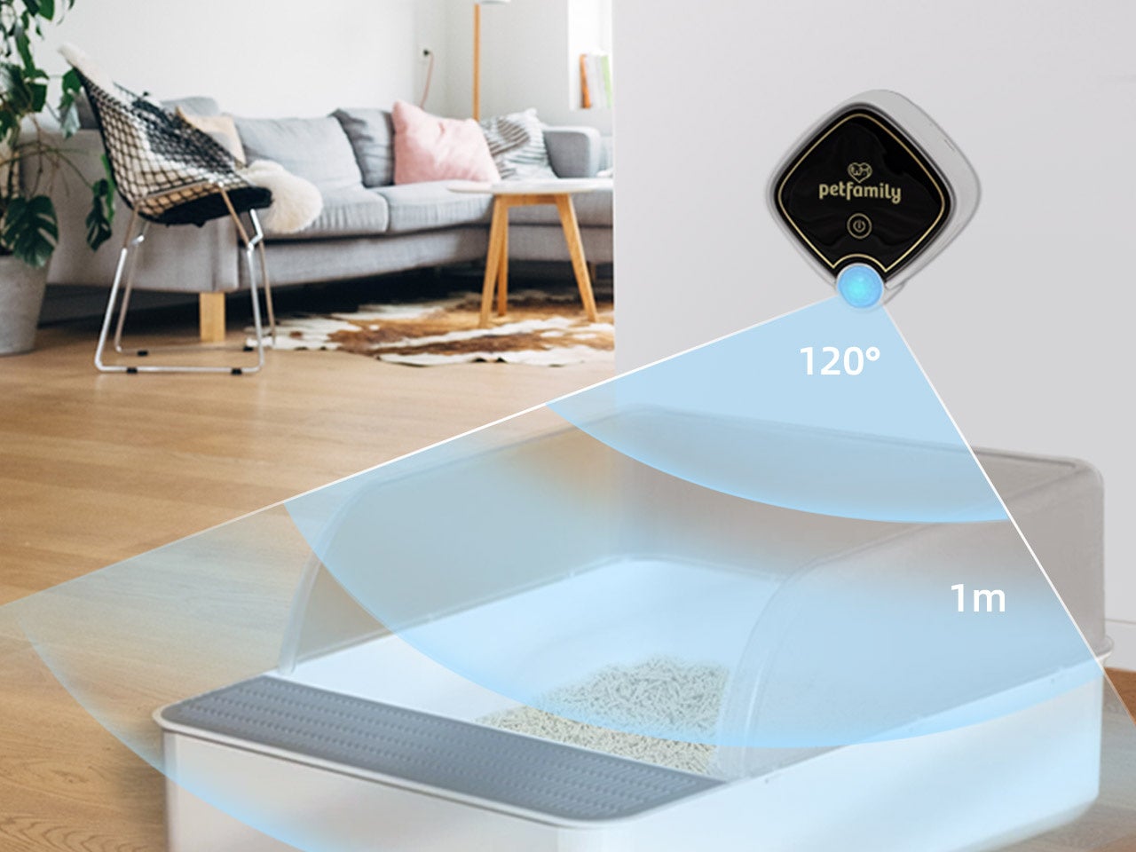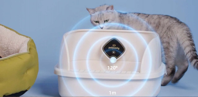 本製品のスマートセンサーは、手前1メートルの範囲のペットや人間を自動で検知し、自動で一時停止します。