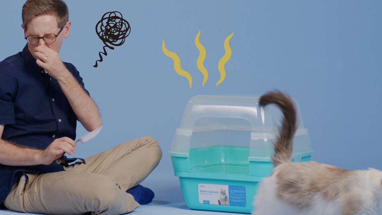 ▲実際にペットトイレと同じくらいのサイズの箱で実験を行った動画です。蓋付きのペットトイレの場合、約10分でニオイが気にならなくなります。