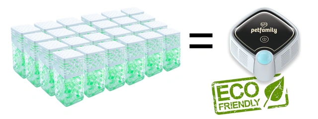 一般的な消臭方法では、芳香剤のゴミ、清浄機のフィルターのゴミなど、大量のゴミが出ていました。