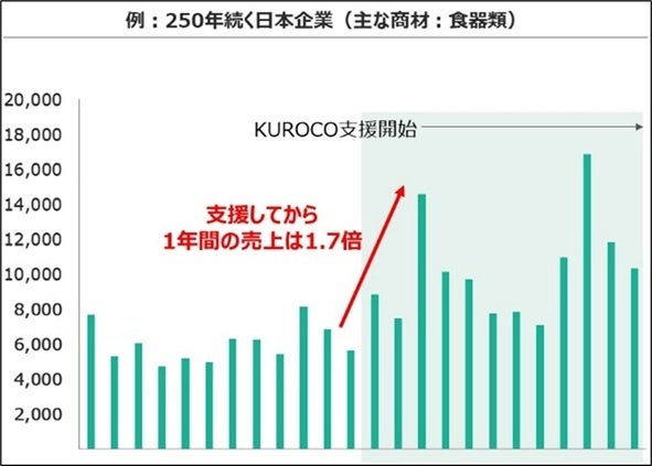 企業数の99%、従業員数の70%が中小企業で成り立っている日本。少子高齢化による人手不足やICT技術の早期進展などにより、課題が山積みとなっている中小企業が多い現状があります。その中でも特にDX化が追いつかず、生産性が低いまま経営をしている点を危惧し、齋藤健太はデータ分析とAIの力で解決を図ろうと独自に開発した「KUROCOデータ支援サービス*」と「KUROCO AI」を中小企業に向けて提供しています。中小企業の黒子としての動きは見えずとも、成果は数字として見えています。売上の増加、リピート率の上昇など”KUROCO支援”の実績は確固たるものとなっています。実績例を以下に示します。