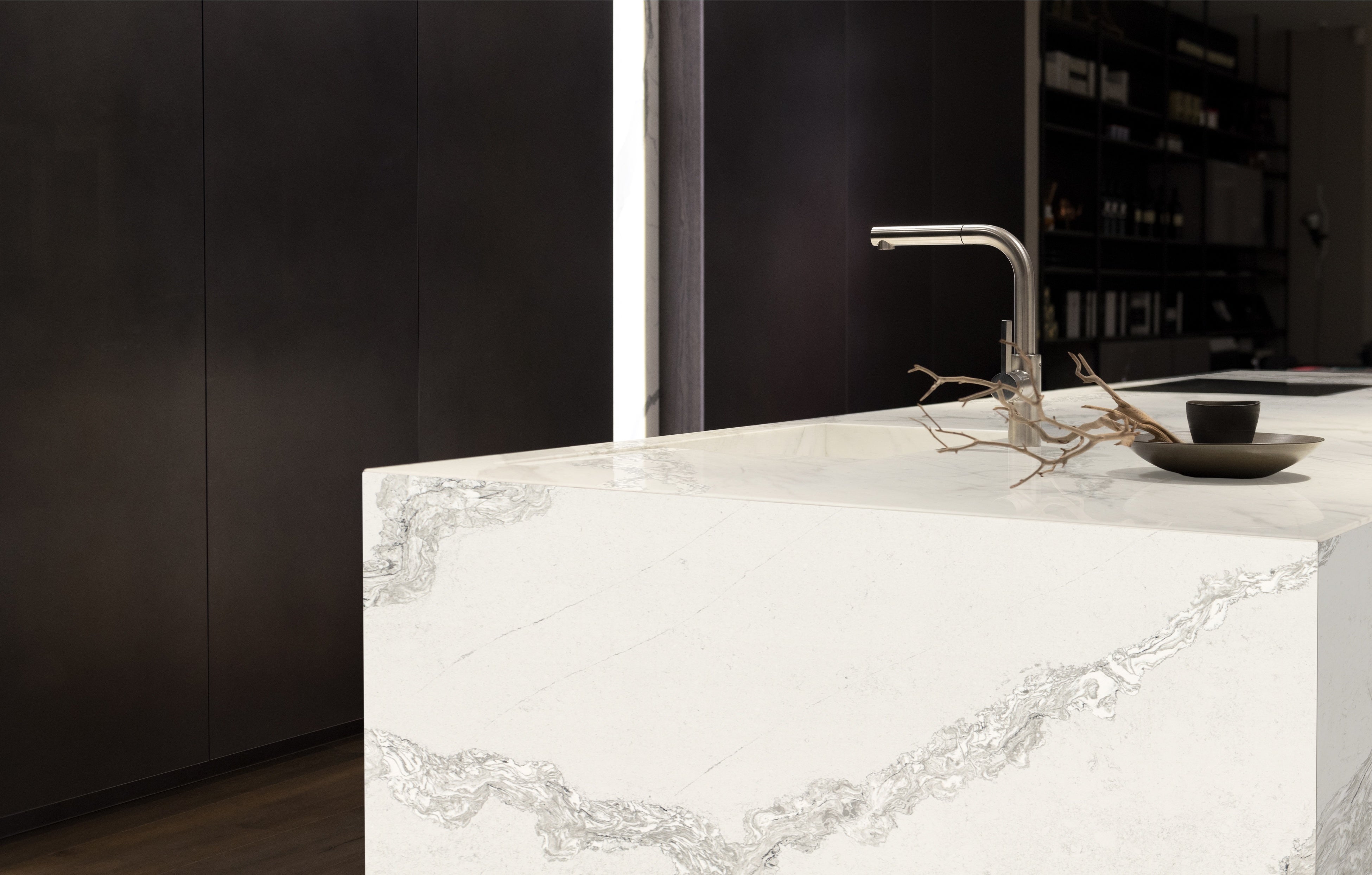 クオーツサーフェイスは、傷が付きにくく吸水率が非常に低いことから、キッチンカウンターや洗面台、シャワーブースなどの水回りや内装など、幅広い用途でご利用いただけます。