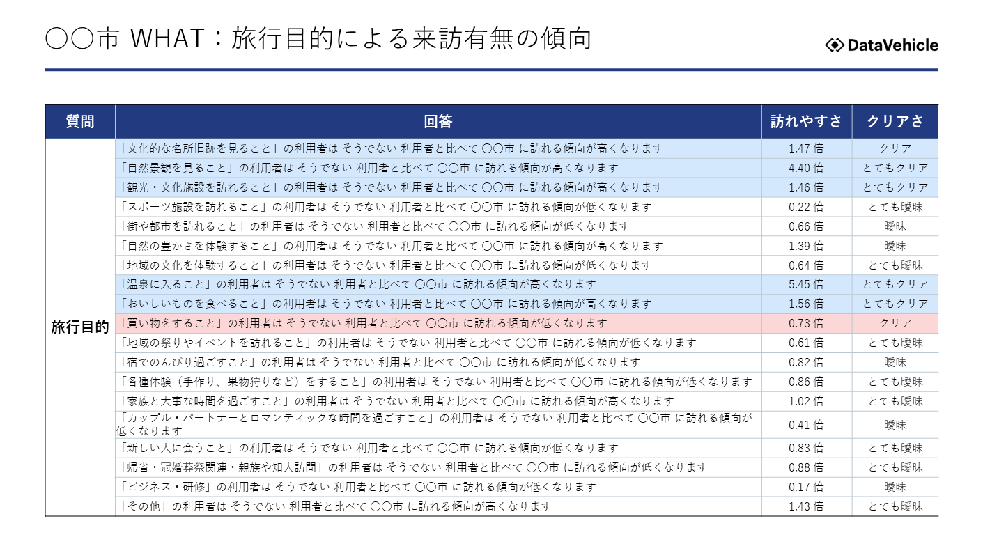 ※オルタナインサイトは、アンケートで集計したデータに高度な統計解析を適用し、その結果と根拠を文章で説明する「分析」に強みがあり、自治体の観光DXでは地域ごとの課題解決に直結した結果を示すレポートを提供しています。