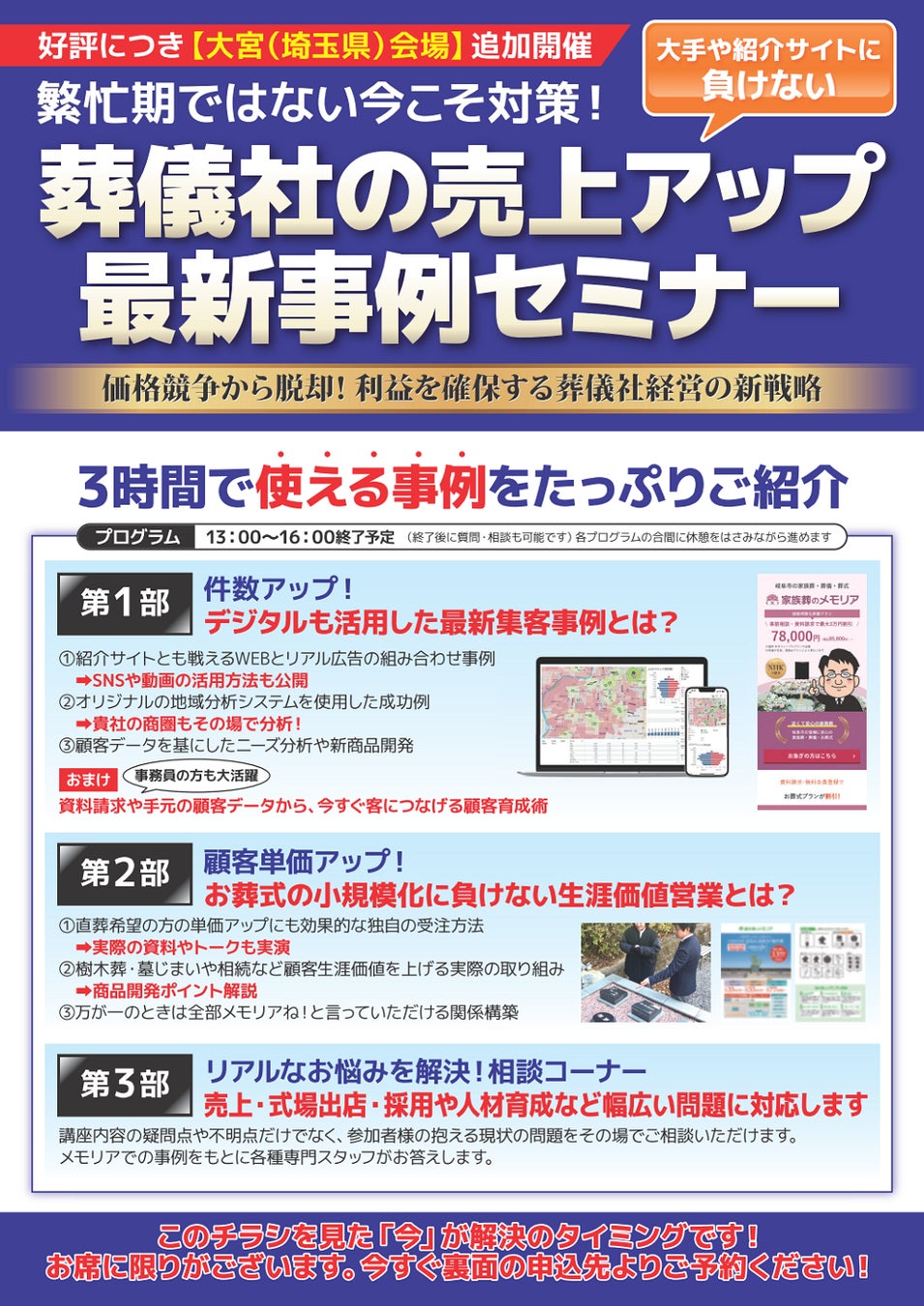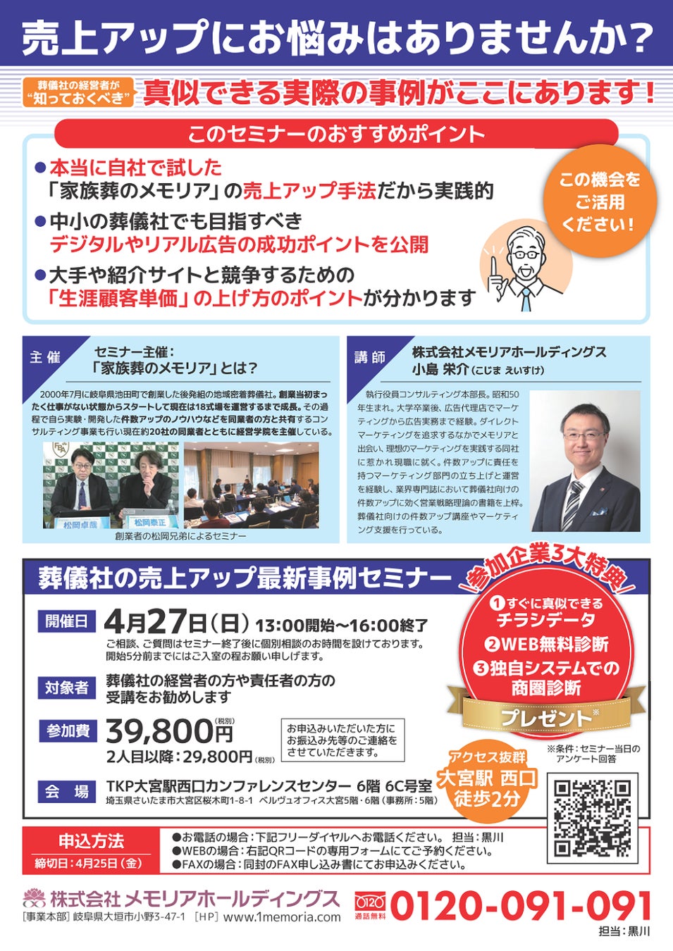 株式会社メモリアホールディングス主催「葬儀社の売上アップ最新事例セミナー」2025年4月27日 大宮にて開催決定!