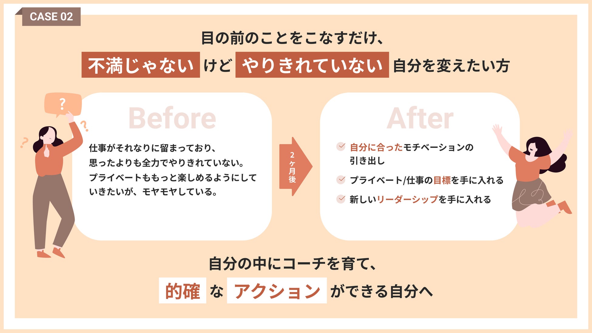 ②専属のコーチとのセッションで、自分独自のセルフマネジメント方法を習得