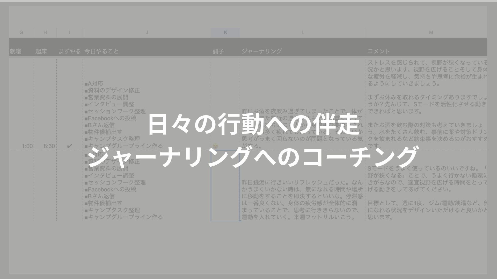 日々の変化に伴走するために、毎日のジャーナリングに対して、コメント形式でコーチングを行います。