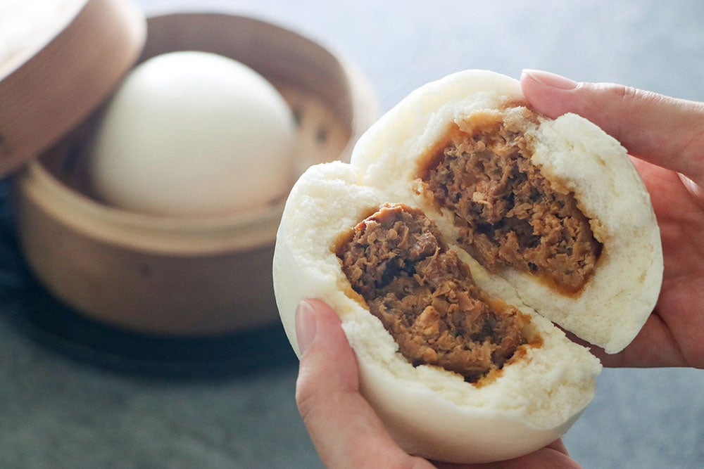 肉まんの肉はジューシーなバラ肉と旨味と歯ごたえの腕肉の2種類を使用。そして、肉や野菜はそれぞれを味付け調理してから合わせており、材料の下ごしらえから完成までには実に1週間がかかります。最後の検品は、味だけでなく、生地と具材のバランスや具材の入っている位置、手で割った際の具材の解れ具合や肉汁の出方までをチェックしている、一品の料理として味わっていただける完成度の「ファストフードではない」肉まんです。
