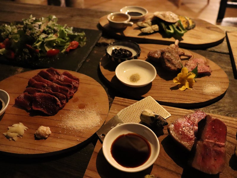 夕食のメインは、特選A5ランクの和牛ステーキや奥多摩産の生柚子胡椒のチキングリル、しずる感溢れるメイソンジャーサラダ、店長こだわりの具沢山トマトポトフ、締めのチーズリゾット、卵屋さんが本気で作った濃厚プリン。天候次第で満天の星空が楽しめる屋外テラスで、豪華な料理を堪能できます。