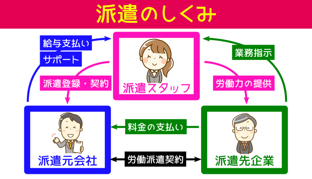 派遣のしくみについては、大まかな流れは上図のようになります。