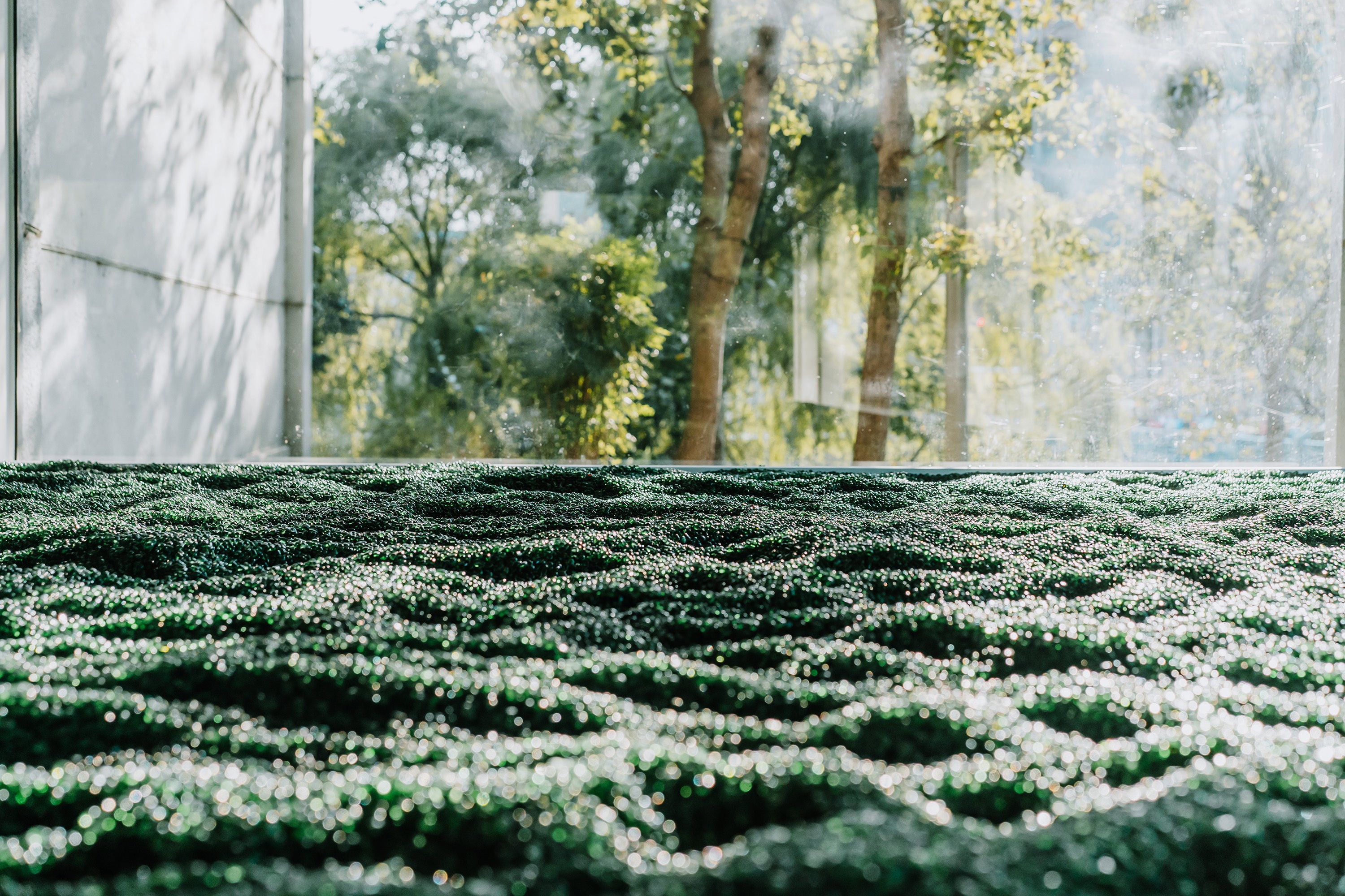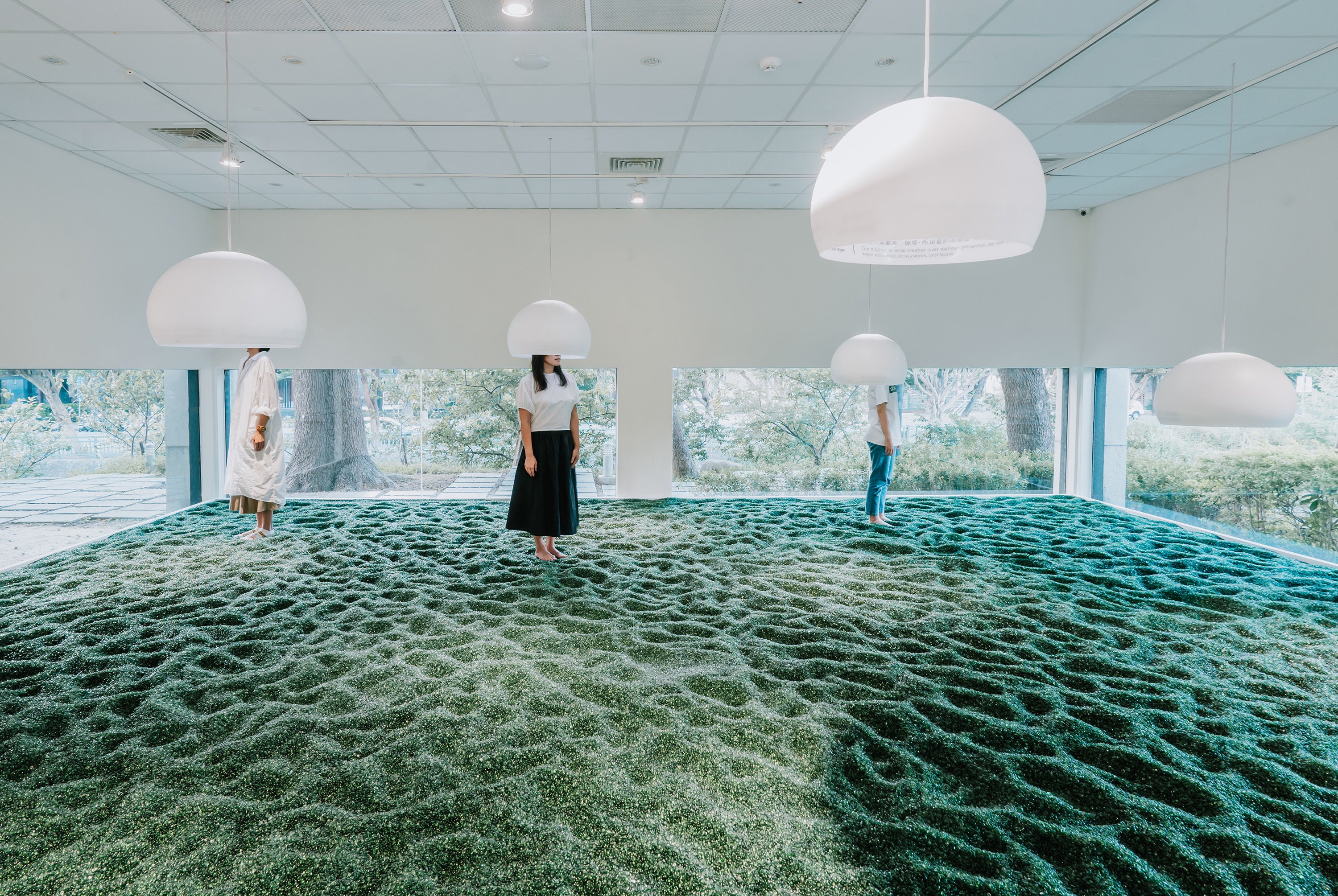 2020年に開催された「〇循環設計展 THE LOOP」では、ワインの廃棄ガラスを利用したガラスビーズで敷き詰められたプールが設置されました。角が削られているため、参加者は足を踏み入れても怪我をすることなく、ガラスの質感を楽しむことができました。