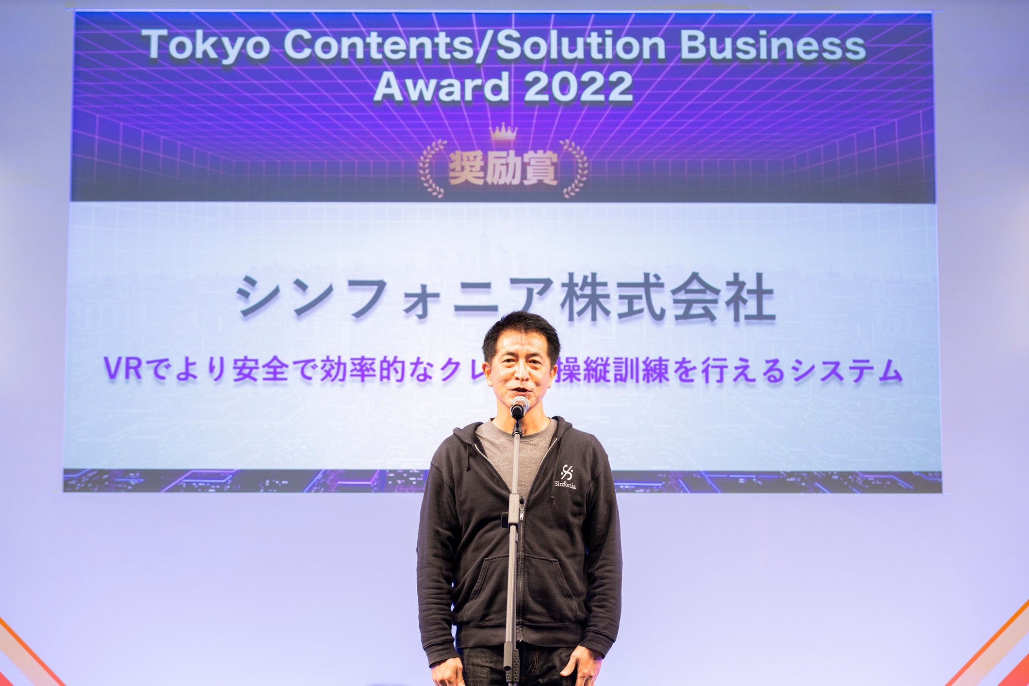 xR訓練コンテンツ等の開発・販売を行っている、シンフォニア株式会社(本社:東京都府中市 代表取締役 瀬戸豊)の『小型移動式クレーンVR訓練システム』が、Tokyo Contents/Solution Business Award 2022(主催:東京都)において、奨励賞を受賞しました。