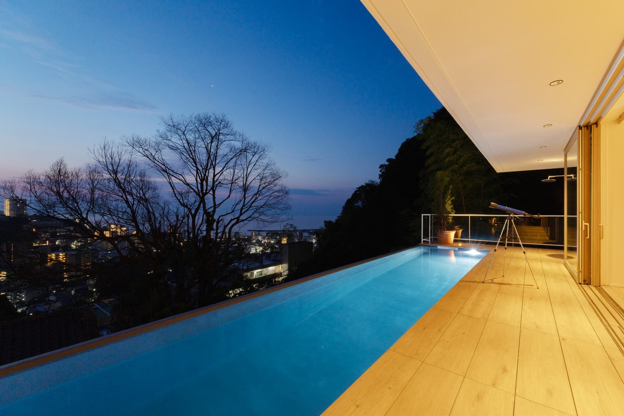 また、60㎡もの広々としたリビングと連なるインフィニティプールは、温水プールで、3月~10月の間にご利用いただけます。