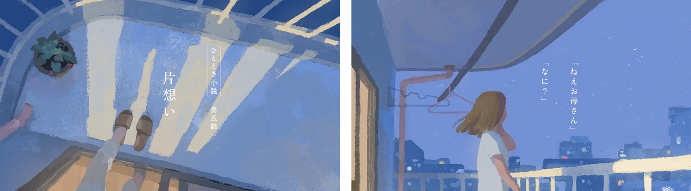 第四話「願い」から1年後、社会人2年目になった登場人物のみゆきさんと、みゆきを想う母の日常のひとときを、イラストレーターのしらこさんが柔らかなタッチで表現しました。