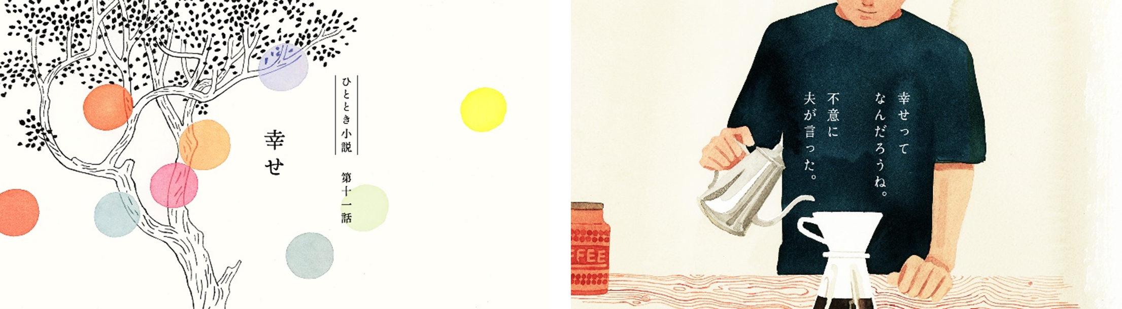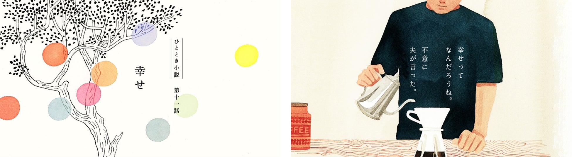 この小説のテーマにある「ささやかな幸せ」と「ちょっとした気づき」。忙しない毎日を生き、どうしても派手なことに意識が向きがちな現代人に、忘れかけていた"人の温もり"を思い出させてくれる、そんな素敵なドラマが詰まっているなと感じました。エピソードごとにイラストレーターさんが変わり、またひと味違った印象で作品に触れられるのも面白いですよね。