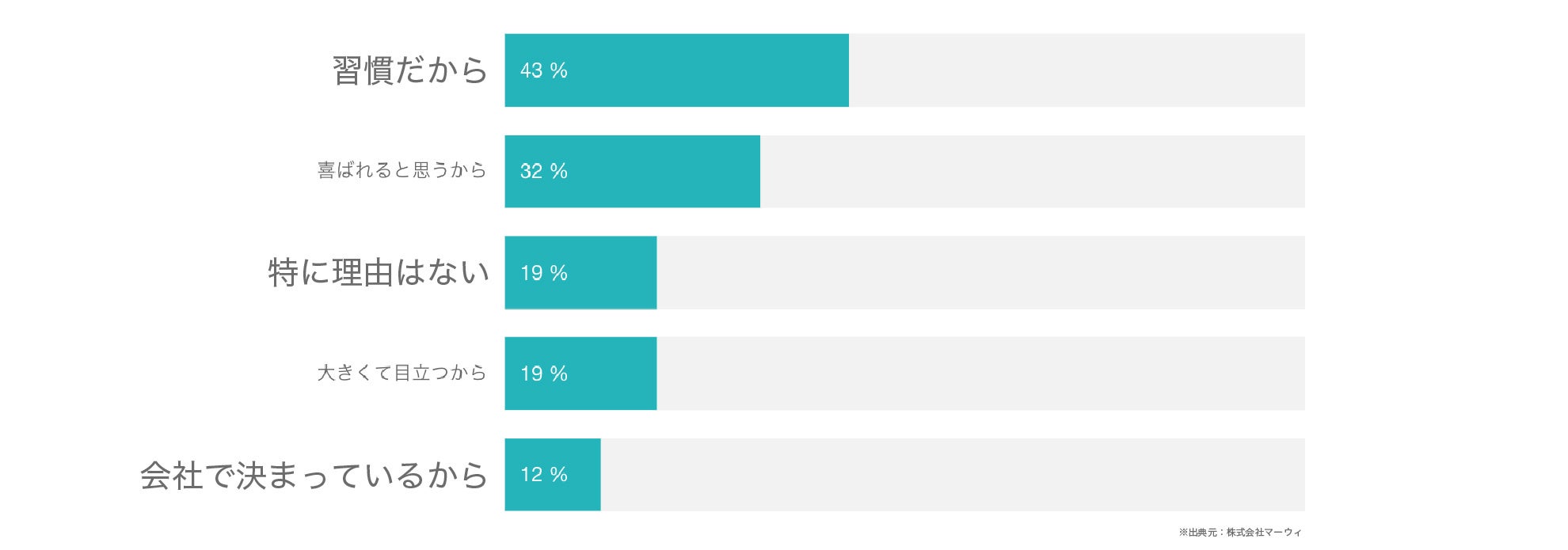 他に、3割は「喜ばれると思うから」と回答、2割が「大きくて目立つから」と回答しました。