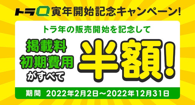 この度、寅年の2022年2月2日に【トラQ】掲載販売の開始を記念して、掲載にかかる料金がすべて半額になる「トラQ寅年開始記念キャンペーン」(略称 トラキャン)を開催します。
