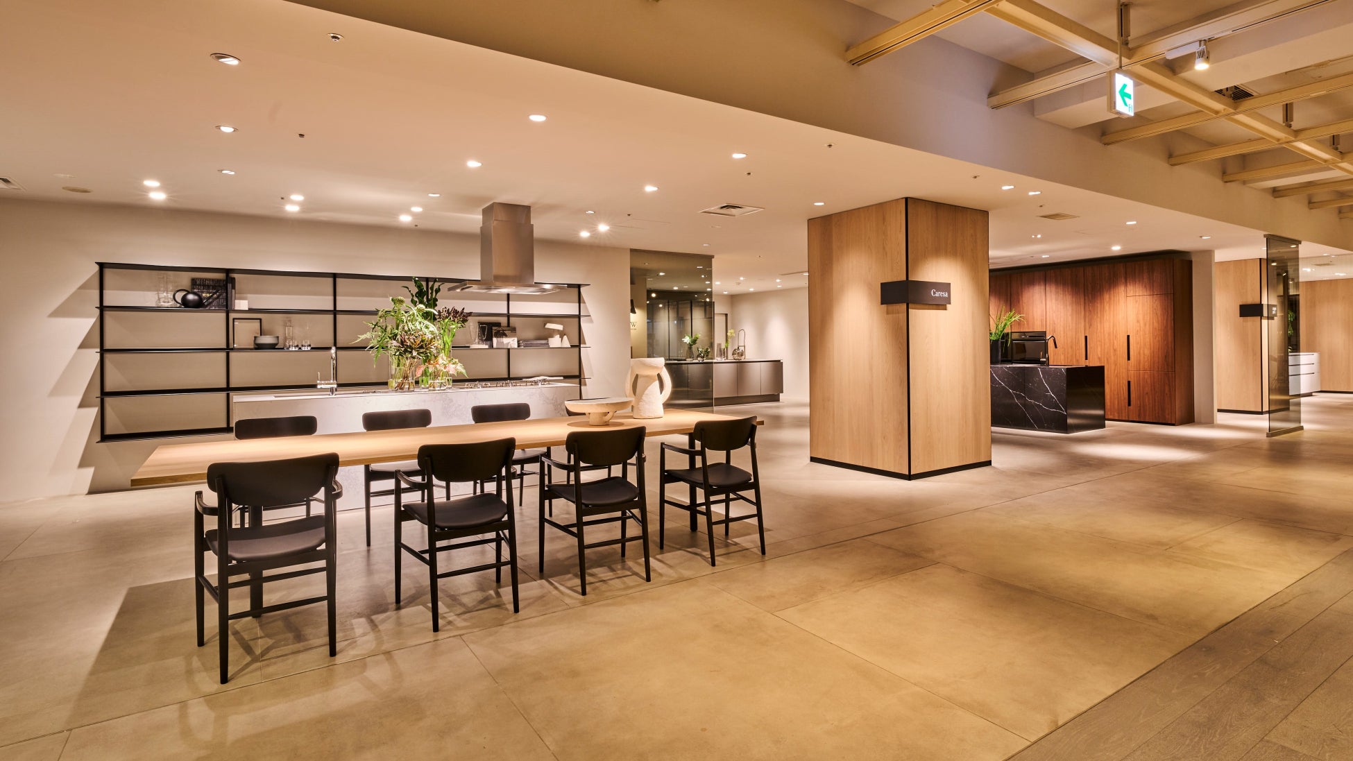 今回のリニューアルに合わせ、パナソニックハウジングソリューションズが提供する、深澤直人デザインの新キッチンブランド「Caresa(カレサ)」の展示と取り扱いを開始する他、<ドイツ・ポーゲンポール><イタリア・ポリフォーム><日本・プラス10(アクタスオリジナル)>のテイストの異なる国内外4つのブランドを一堂にご覧いただける国内屈指のキッチンショールームとなります。