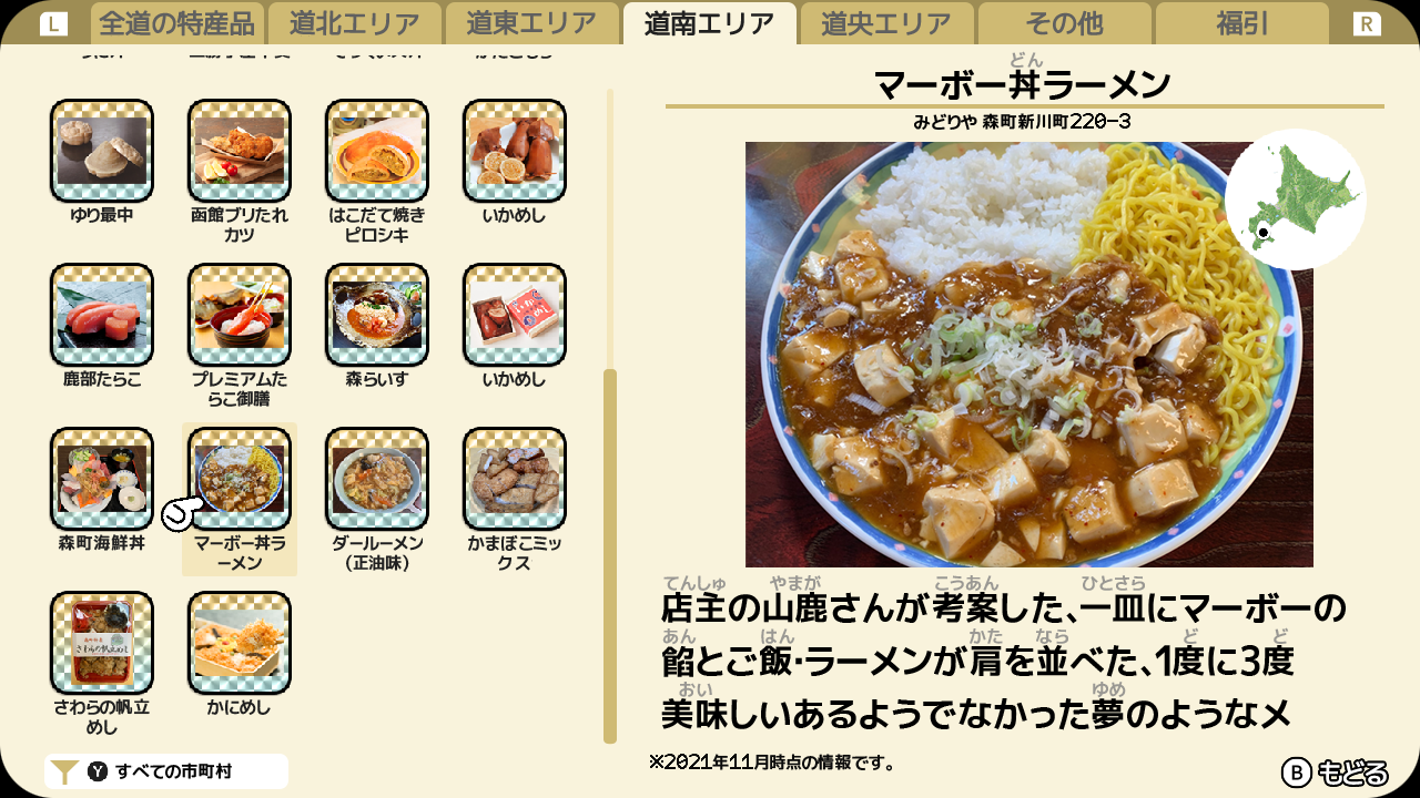 登場する各町の名物料理・特産品の情報や、各町や道の駅などの情報は、テレビ番組『しんや一族』と連動しつつ、各所から情報を集め、継続的に増えていきます。本作は息長くお付き合いいただくことで、北海道情報が詰まったゲームになっていきます。