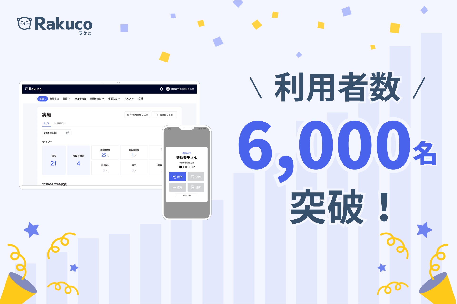 就労支援事業所向けシステム「Rakuco(ラクこ)」、利用者数6,000名・累計300事業所を突破!