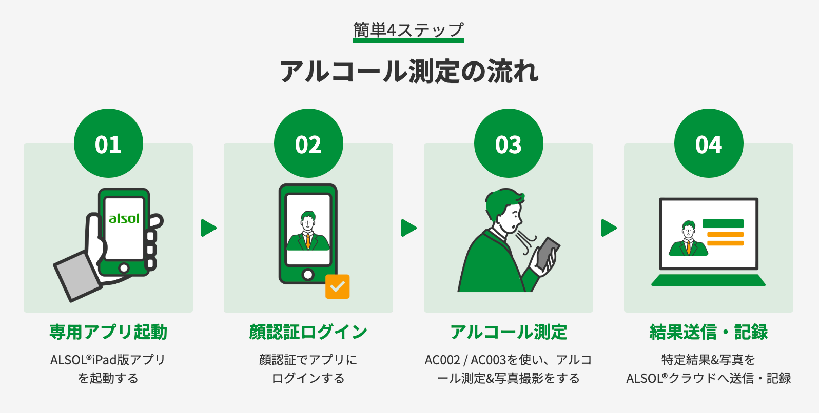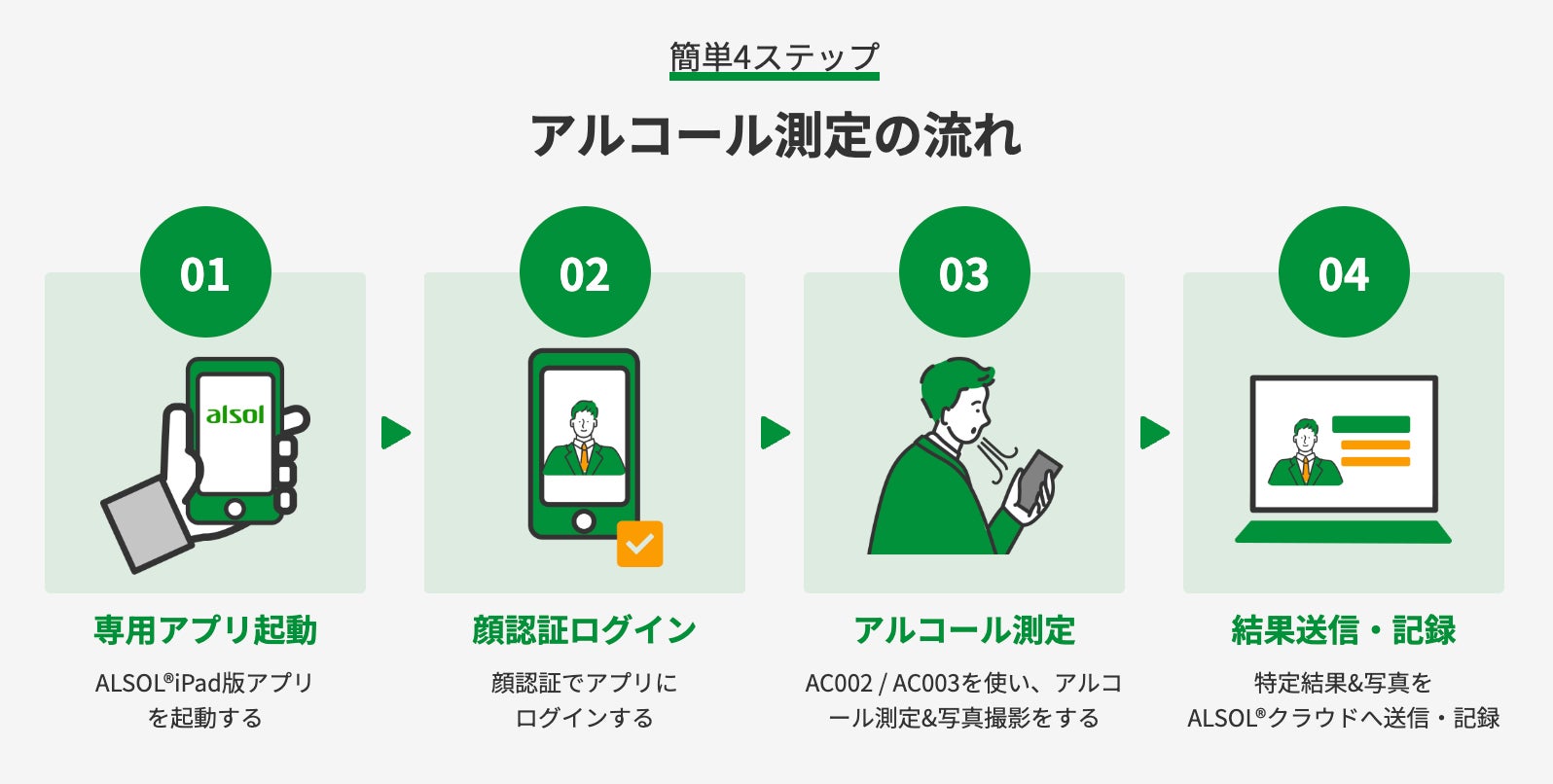 ※ ALSOL®アルコール検知器(AC002やAC003など)の当社からの別途購入が必要です。