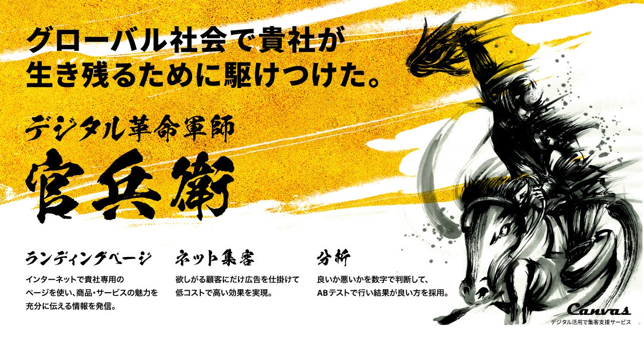 株式会社キャンバス(東京オフィス:東京都港区赤坂9-5-26 AKASAKA HEIGHTS 301、代表取締役:山本博士)は、BtoB企業の営業活動をデジタル化で支援するサービス「デジタル革命軍師 官兵衛(でじたるかくめいぐんし かんべえ)」の提供を7月1日より開始しました。