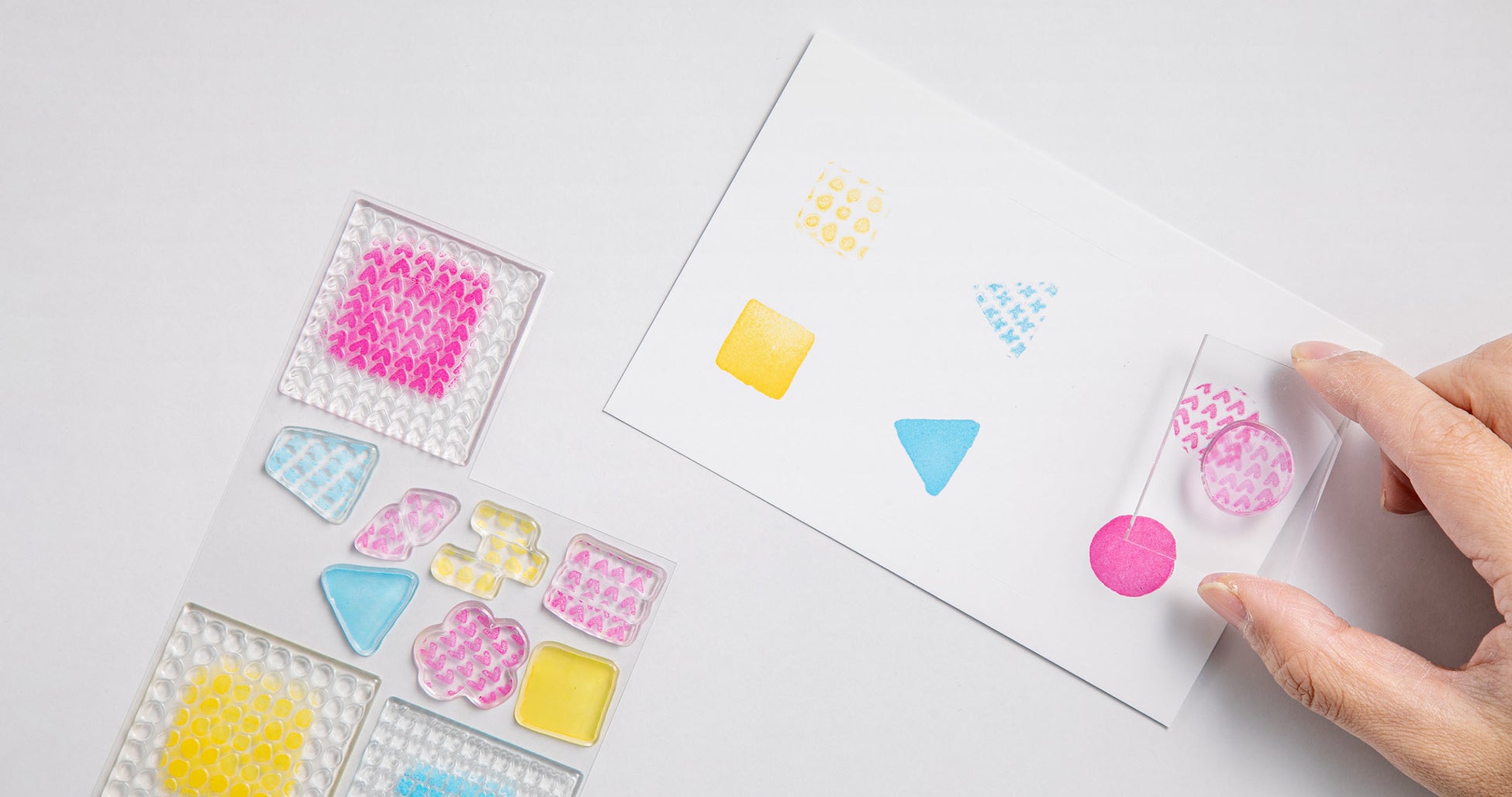 ・柄と形を重ねることで様々なデザインができるクリアスタンプ