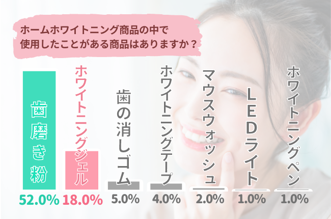 - 半数以上が自宅ホワイトニングも経験済み