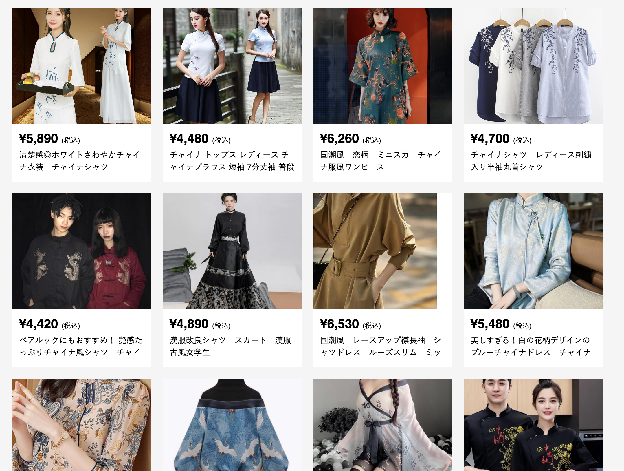 特徴2:様々なカテゴリのチャイナ服を掲載