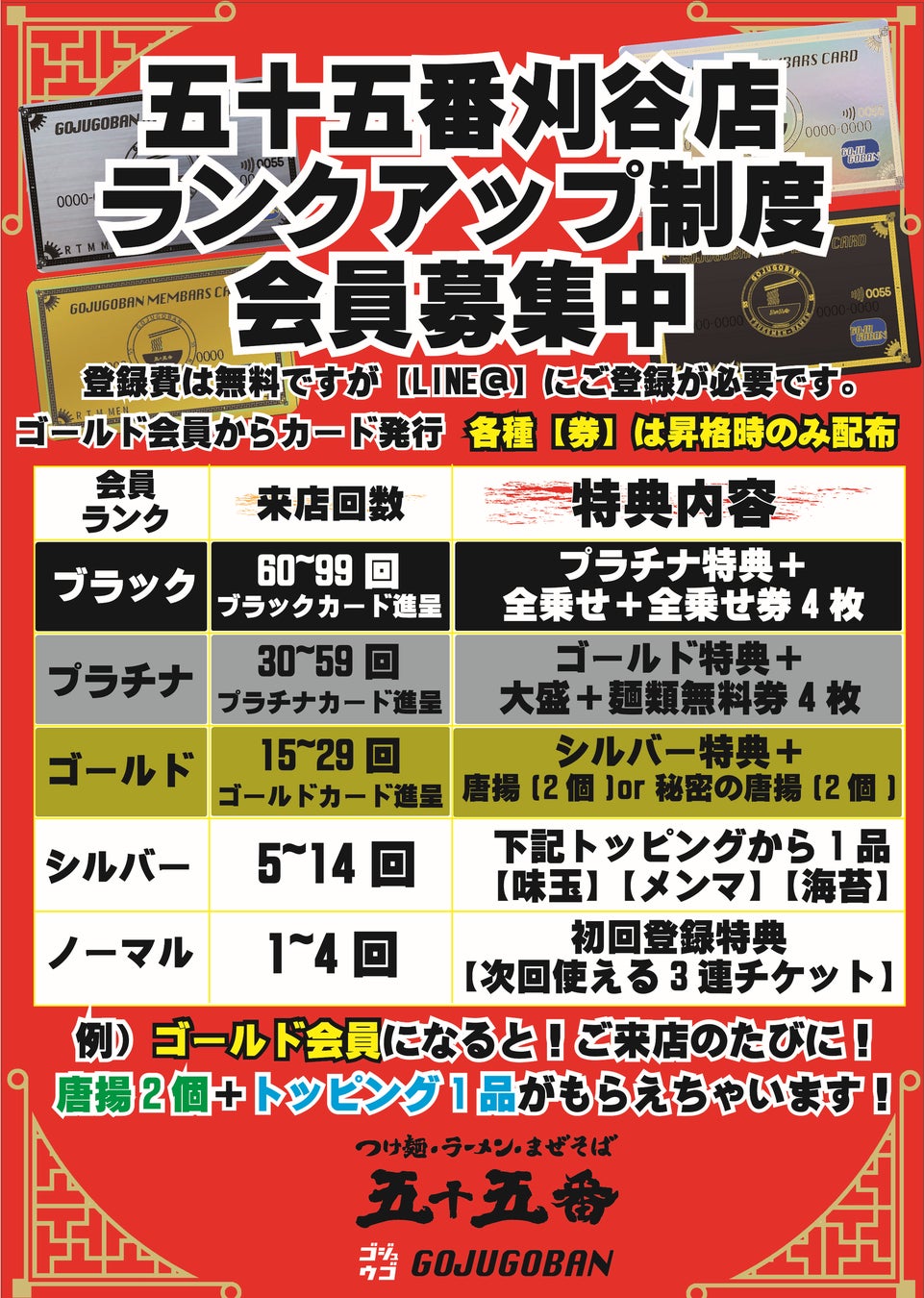 - 何度も通いたくなる五十五番の『ランクアップ会員制度』の紹介