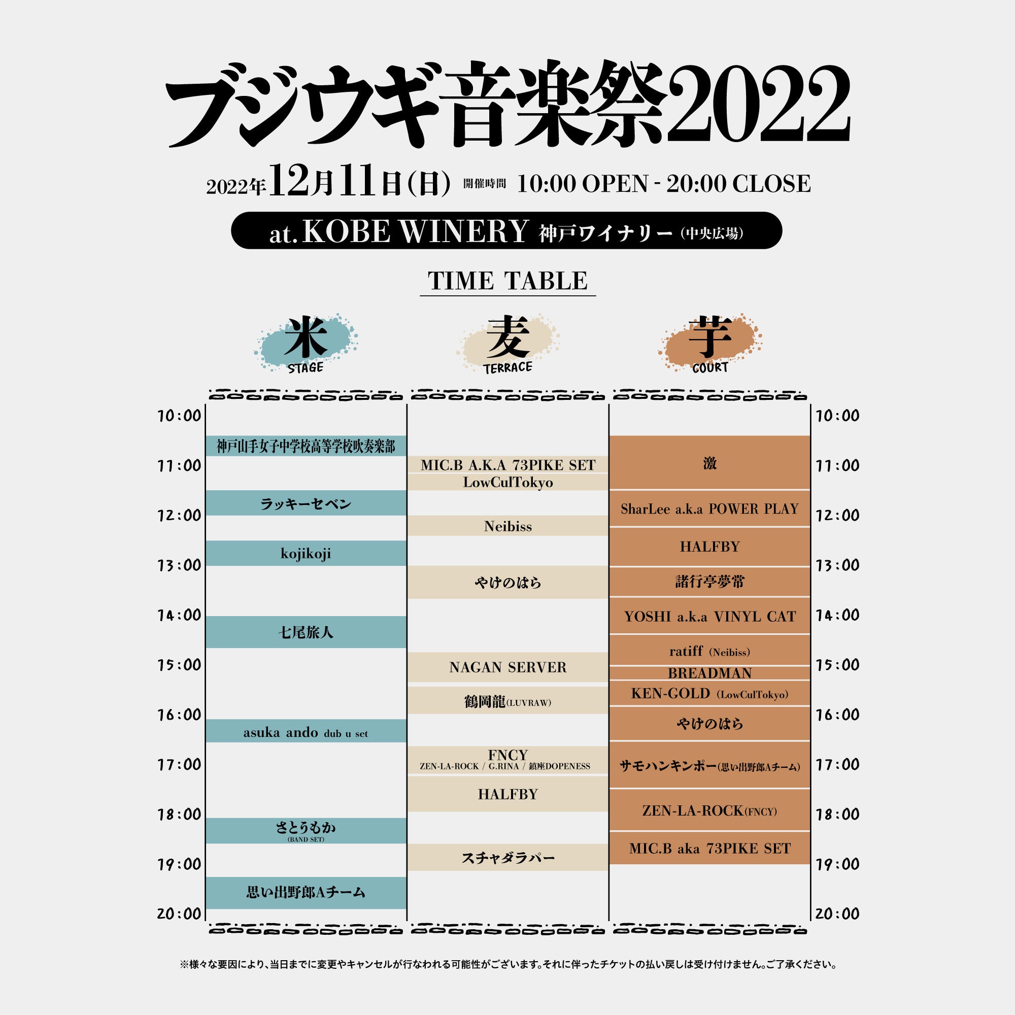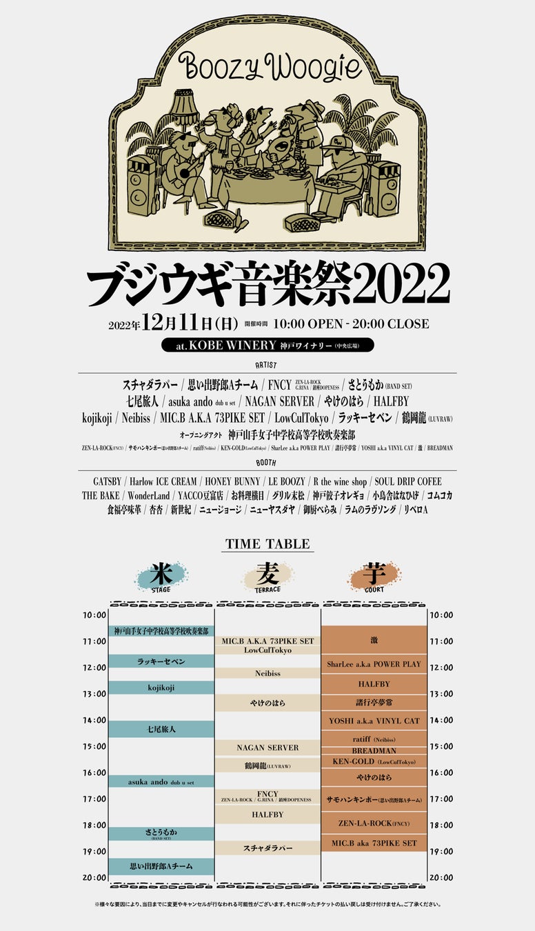 ブジウギ音楽祭2022~BOOZY WOOGIE~が2022年12月11日(日)@神戸ワイナリーにて開催!